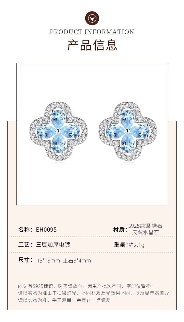 Нишевые серьги с четырьмя листами клевера для женщин, высококачественные серьги с натуральным аметистом и топазом, серебро 952 пробы, доступные роскошные аксессуары для женщин