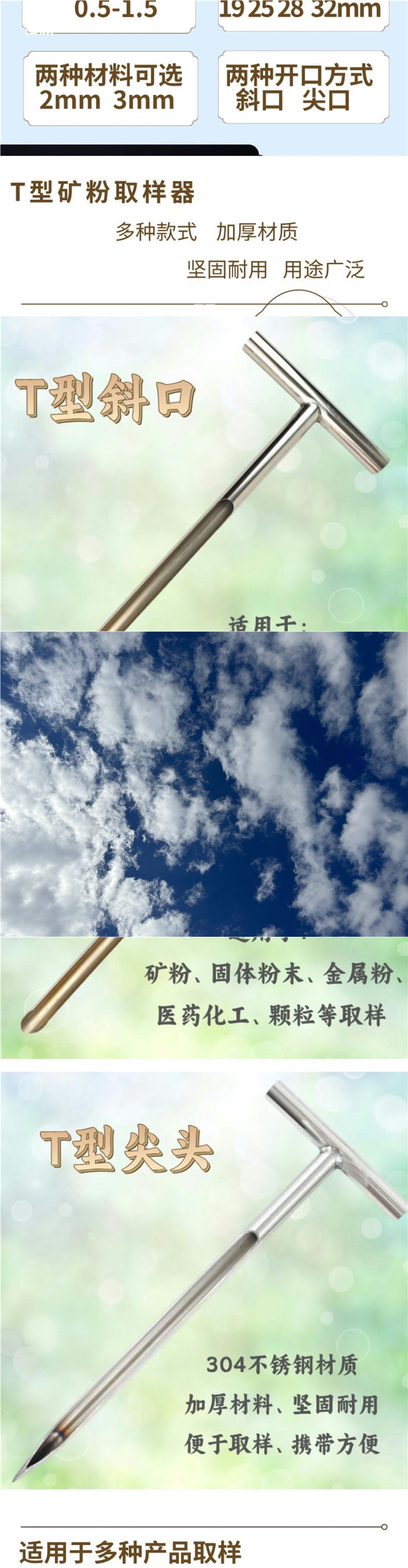 T-образный образец минерального порошка из нержавеющей стали 304, утолщенный химический однотрубный образец твердых частиц, лопата для отбора проб, стержень для отбора проб