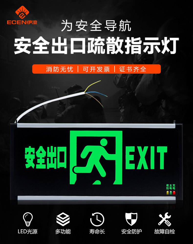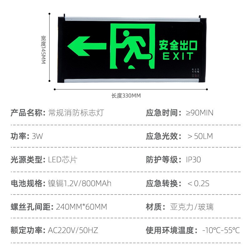 Световой указатель пожарной тревоги из акрилового стекла Yicheng, указатель эвакуации, световой индикатор выхода для безопасности