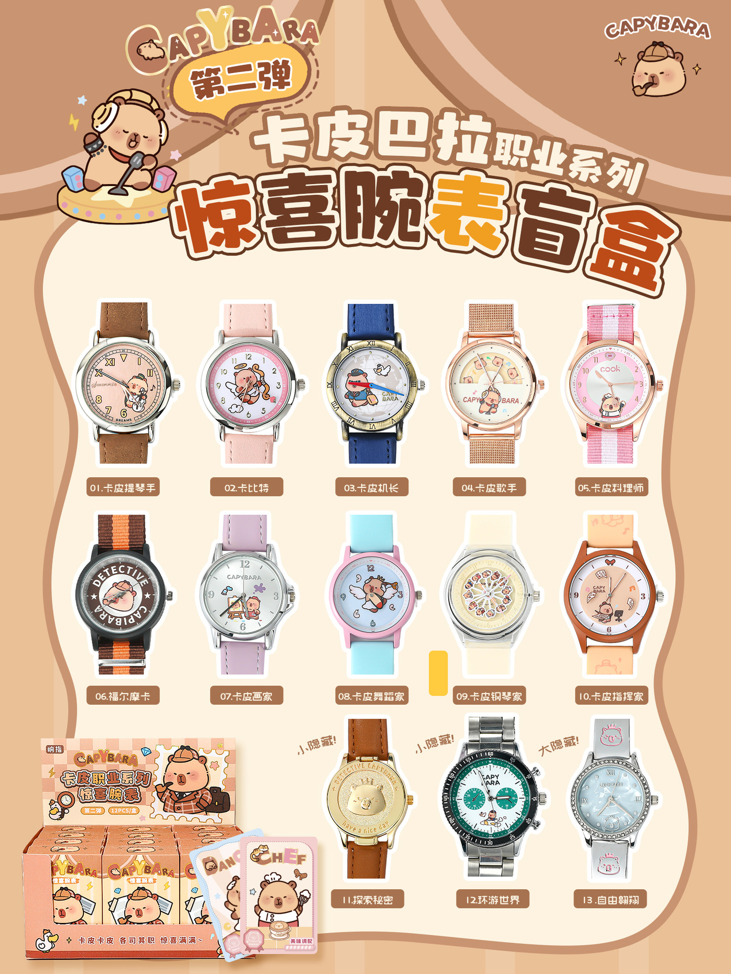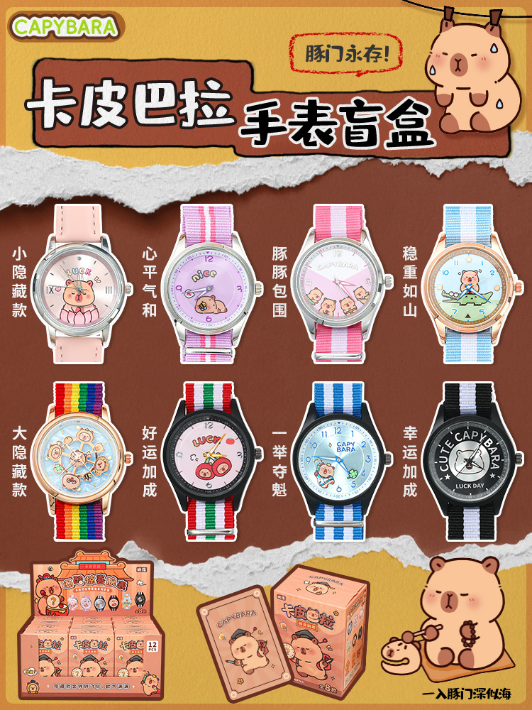49747-XZ-46161 Коробка-сюрприз для часов Kapibala; 53027-XZ-50011 Часы-сюрприз серии Capibara Professional; Коробка-сюрприз для часов Butter Belle
