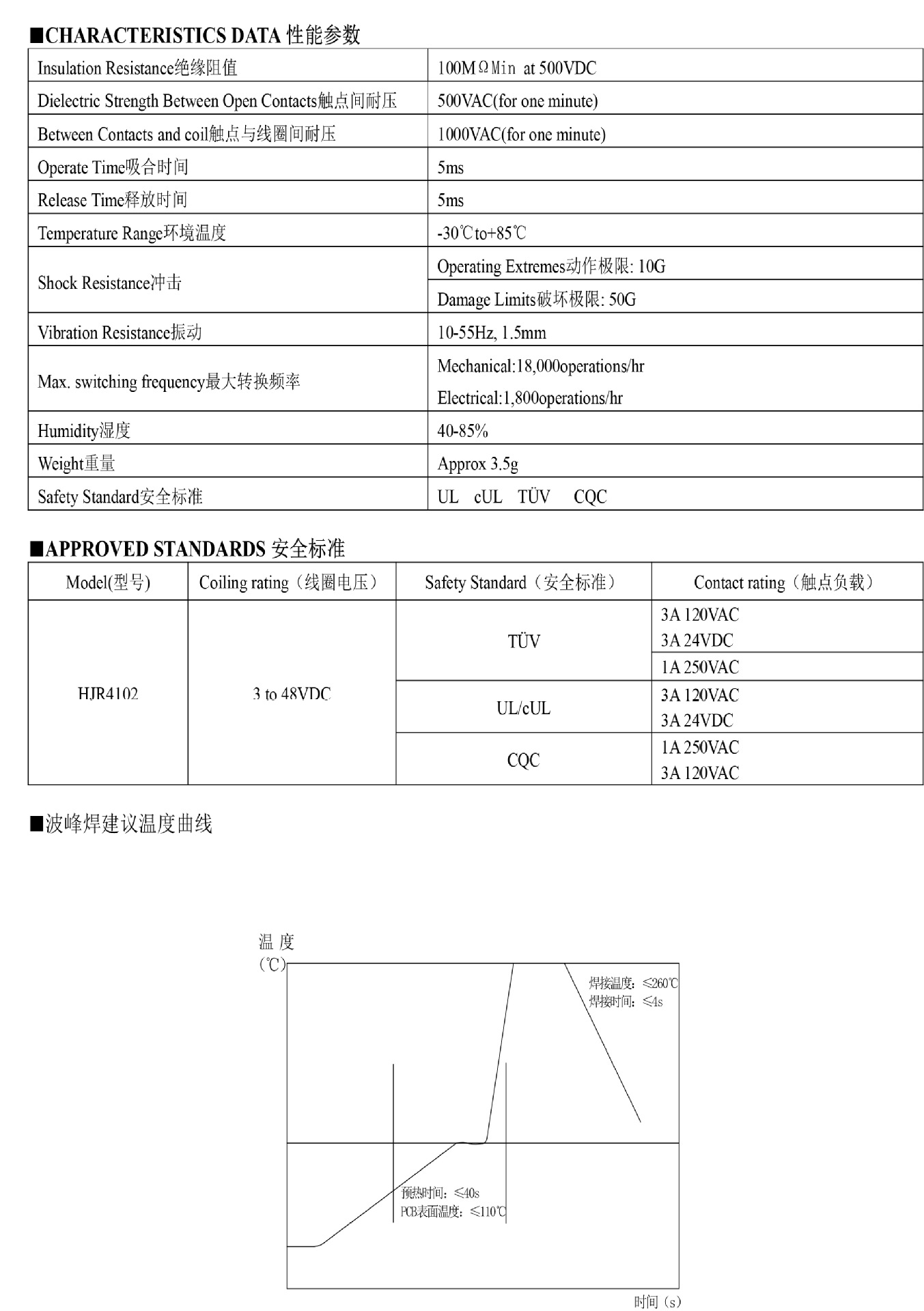 HJR-4102-L-5VDC [6 контактов, 3 А, один открытый и один закрытый]; HJR-4102-L-12VDC [6 контактов, 3 А, один открытый и один закрытый]; HJR-4102-L-24VDC [6 контактов, 3 А, один открытый и один закрытый]
