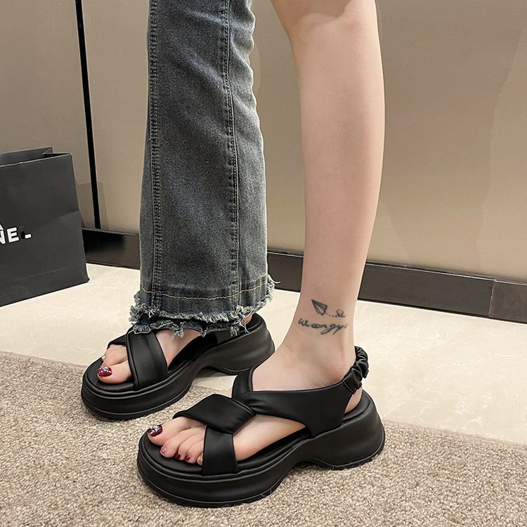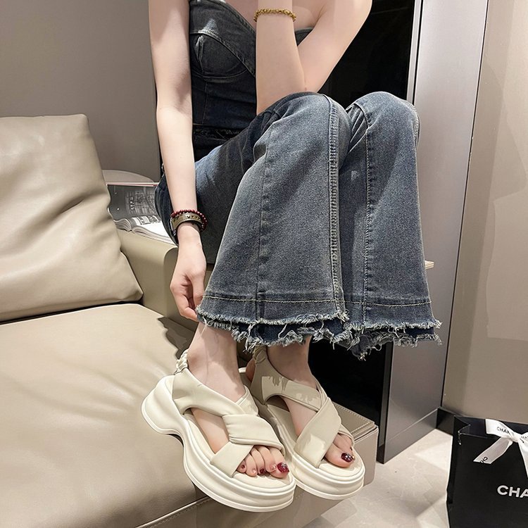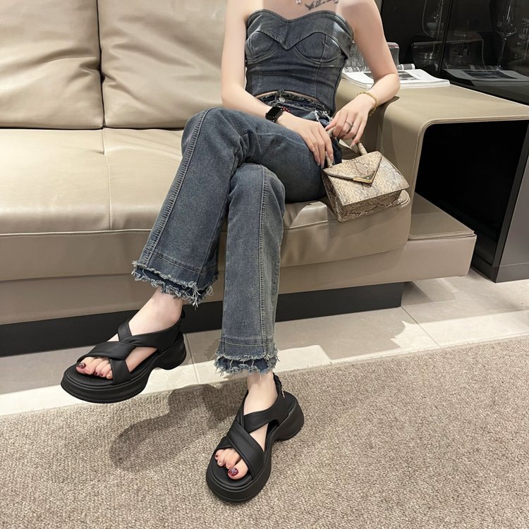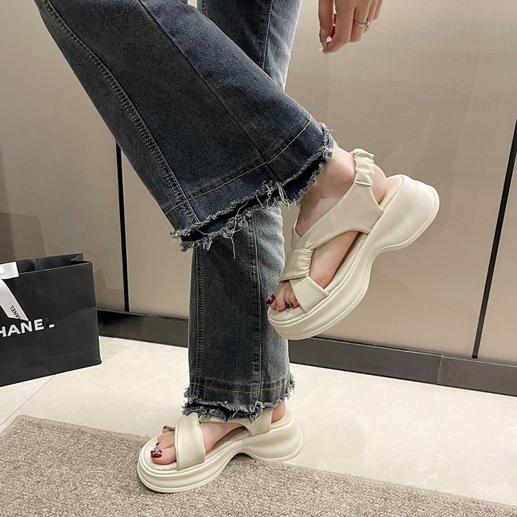 Женские сандалии во французском стиле для уличной одежды, новые летние туфли на платформе на толстой подошве для женщин 2025 года, римские пляжные туфли, увеличивающие рост, для миниатюрных женщин.