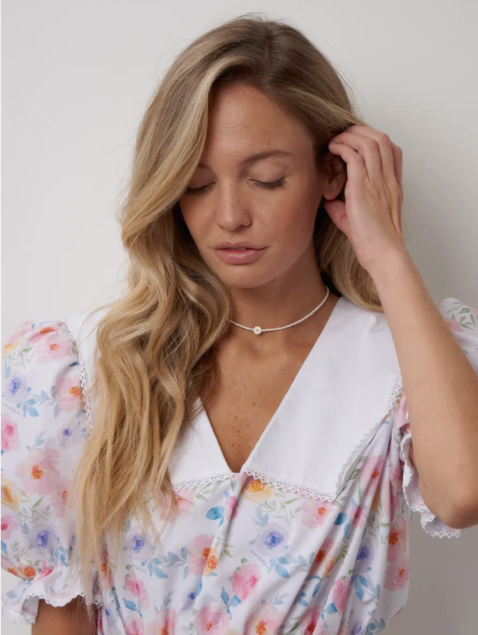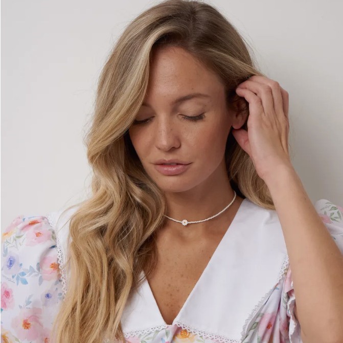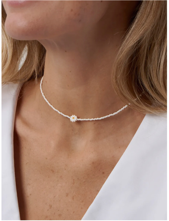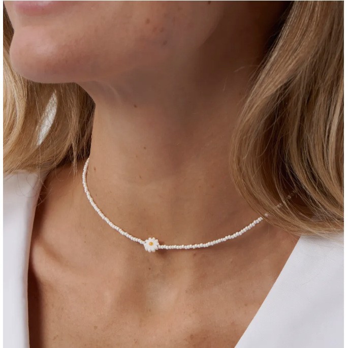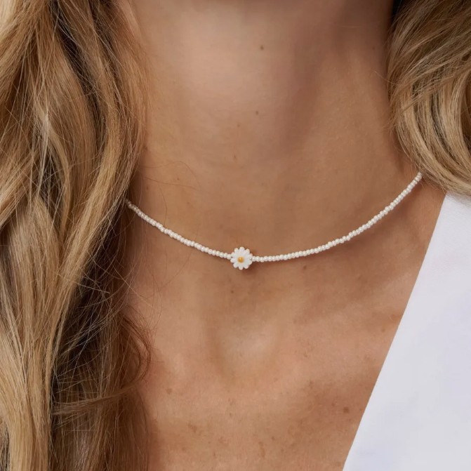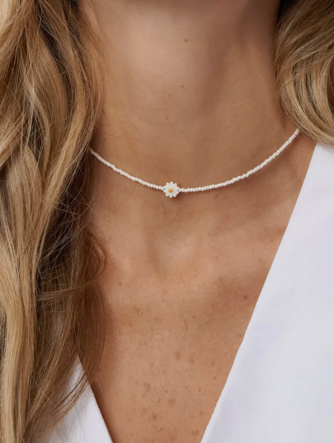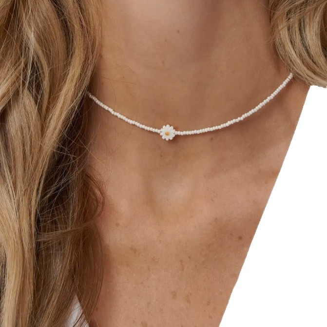 Колье из бисера в стиле французского модерна: жемчужные бусины-ромашки, стеклянные рисовые бусины, женственная многослойная цепочка на ключицу.