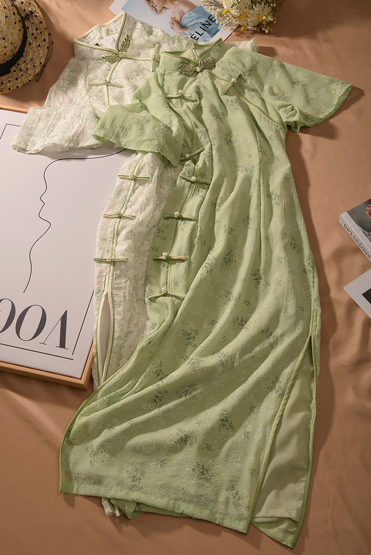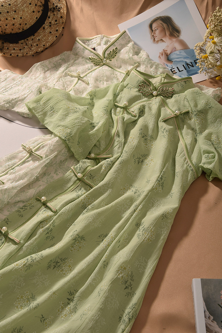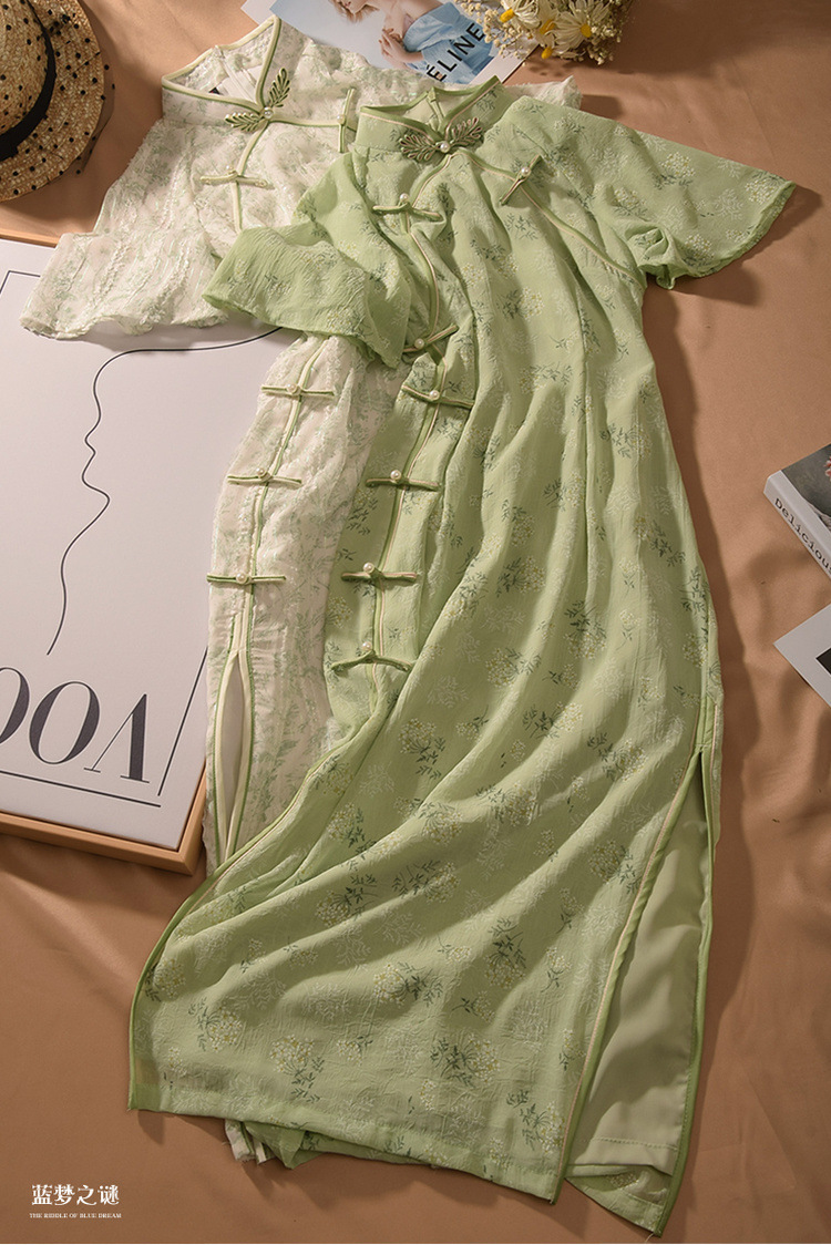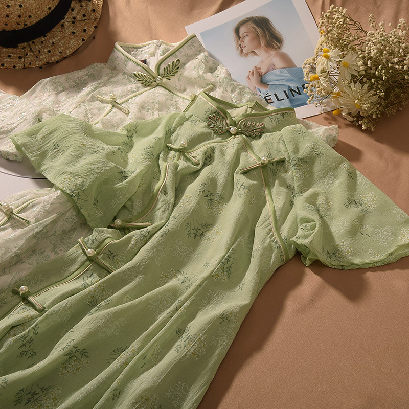 Cheongsam молодой стиль зеленая девушка миниатюрная ретро женское улучшенное платье в национальном стиле Республики Китай женский летний стиль