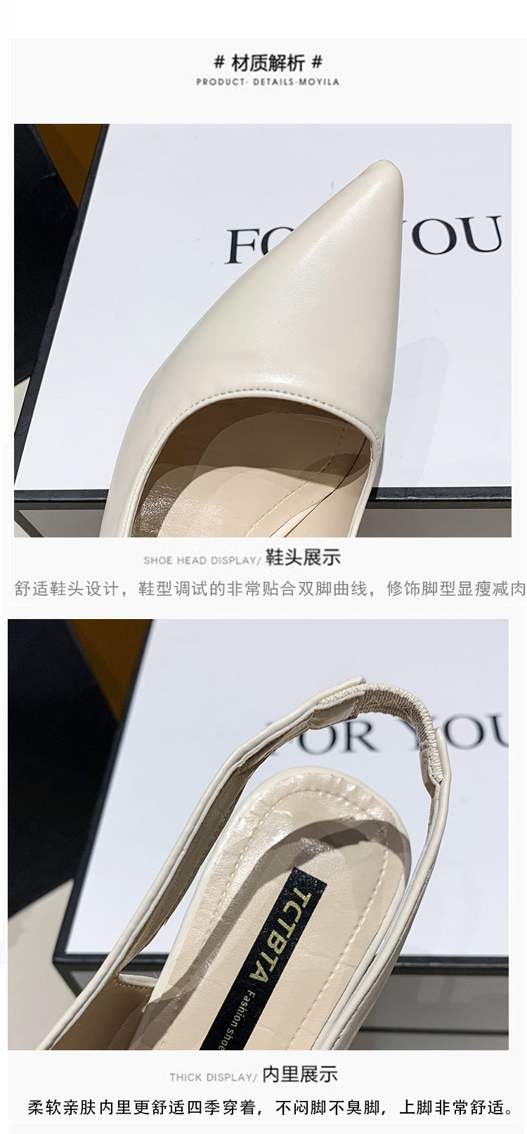 Женские босоножки-стилето с заострённым носком, открытой пяткой и неглубоким вырезом, весна-лето 2025 года.