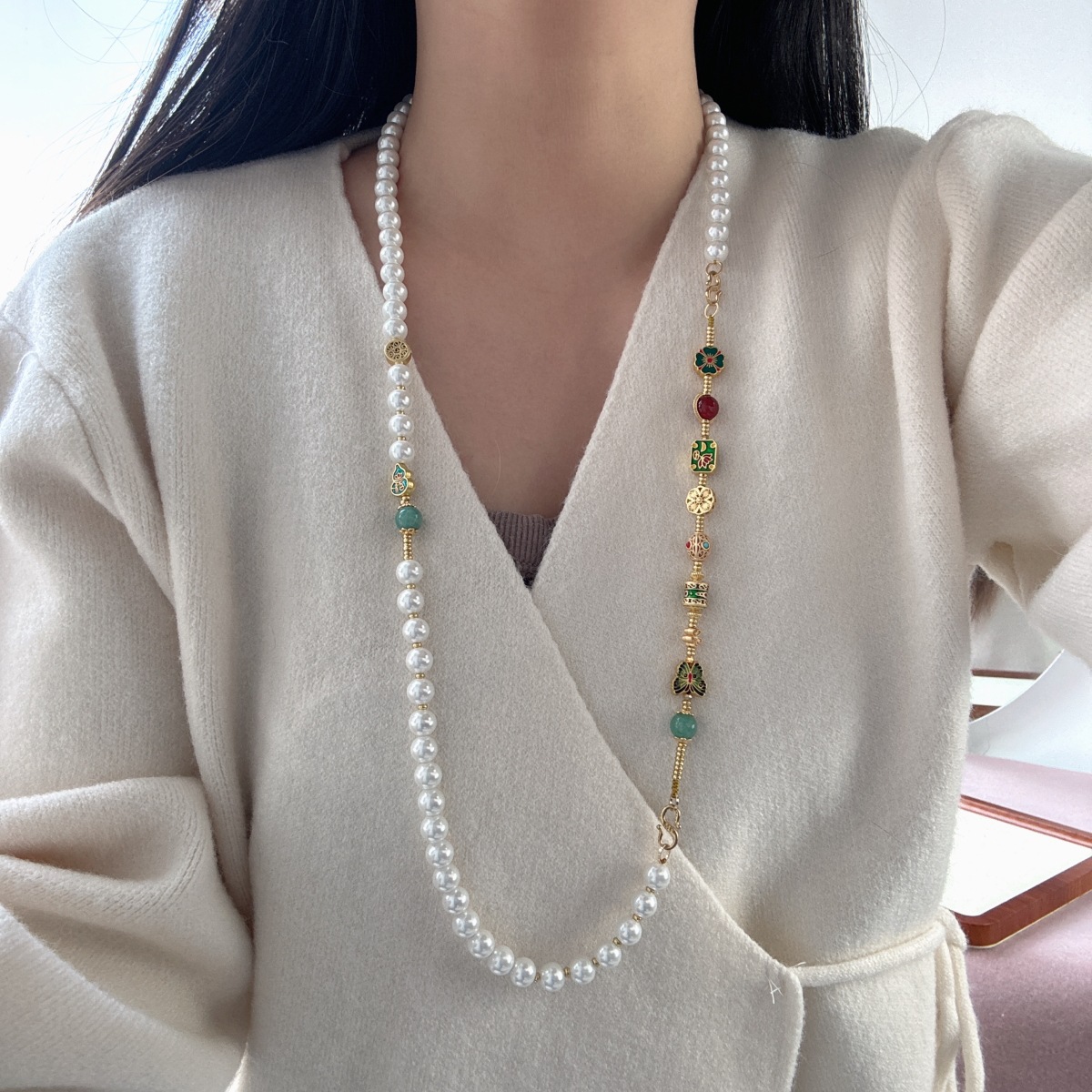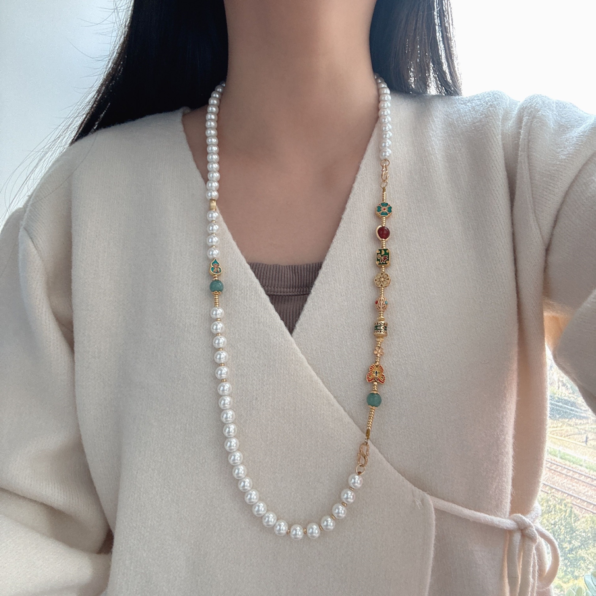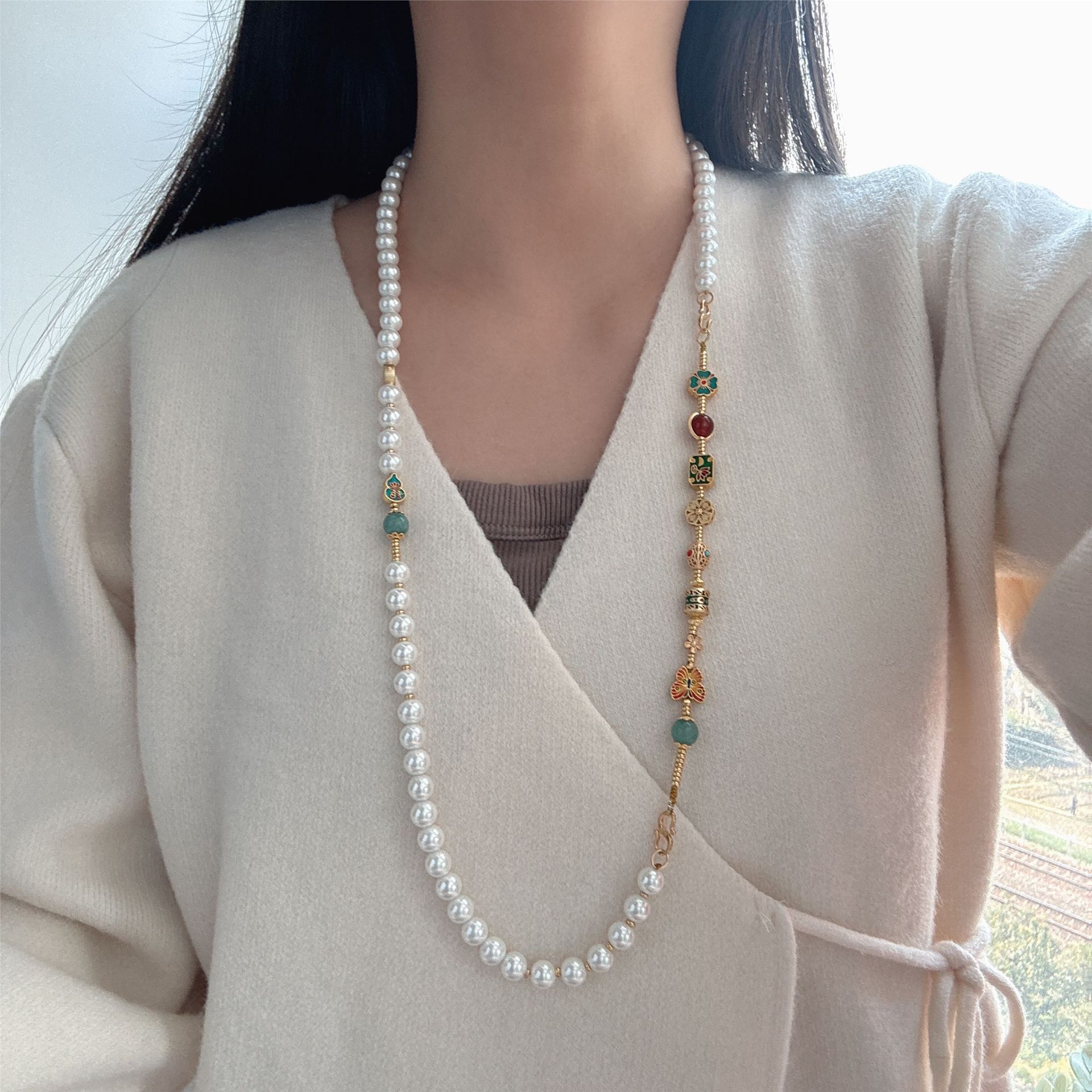 2025 новых легких роскошных универсальных аксессуаров, новое китайское жемчужное ожерелье, новая длинная цепочка для свитера в китайском стиле для женщин