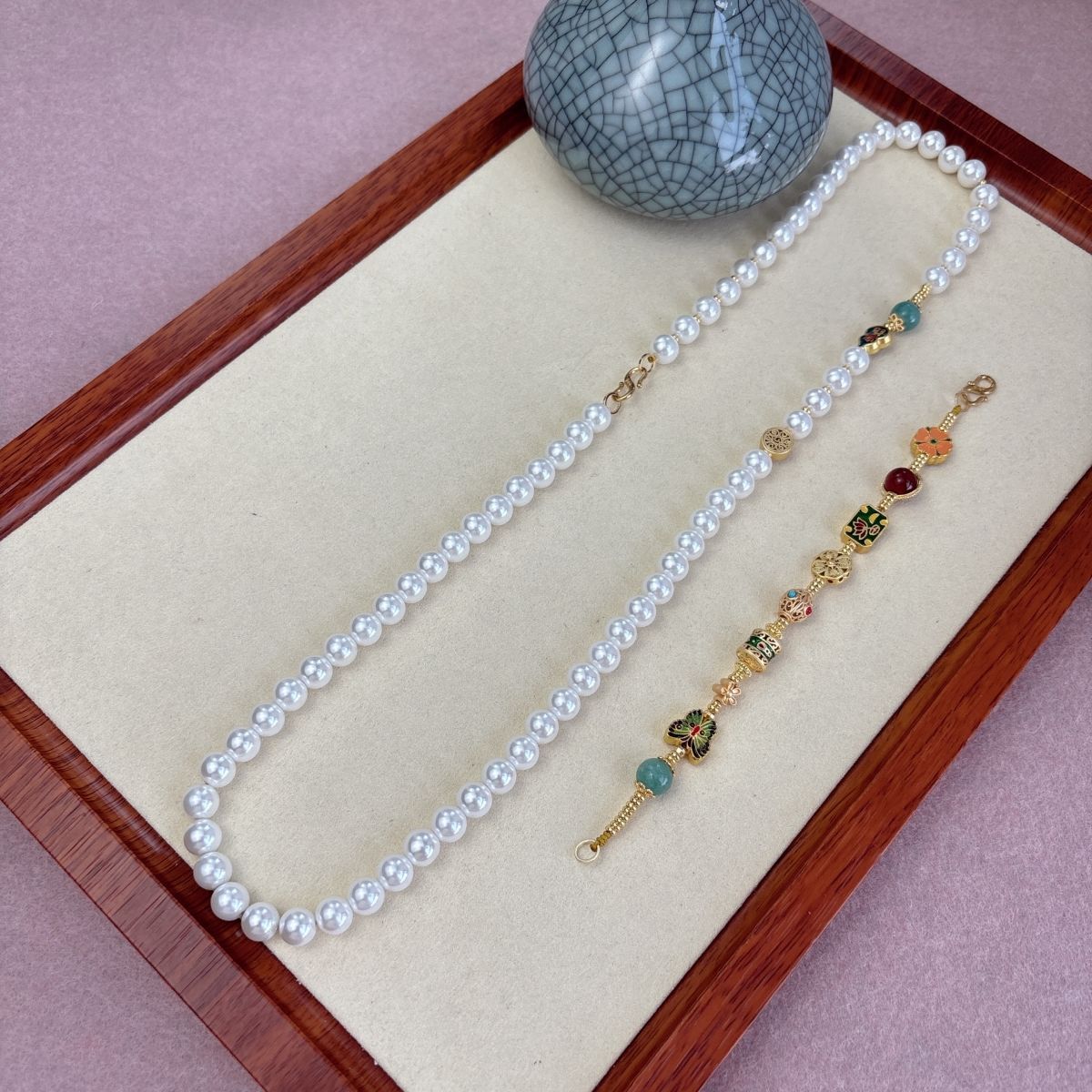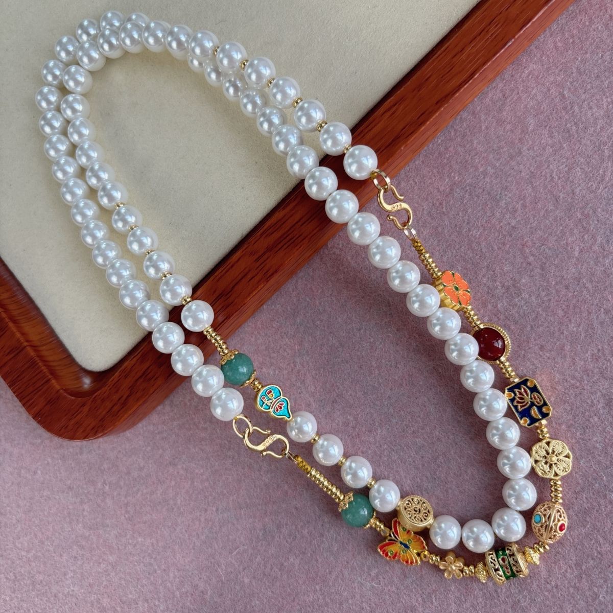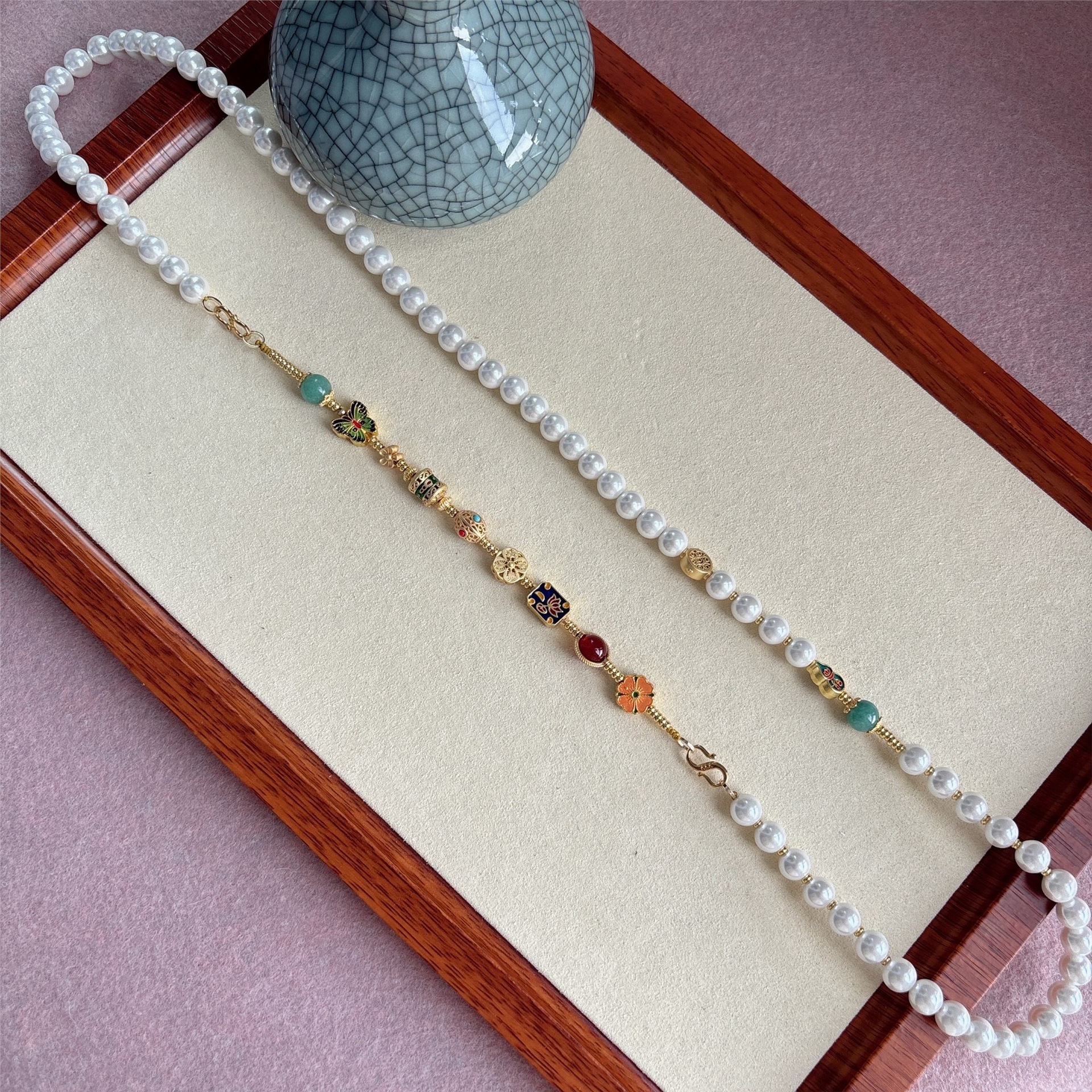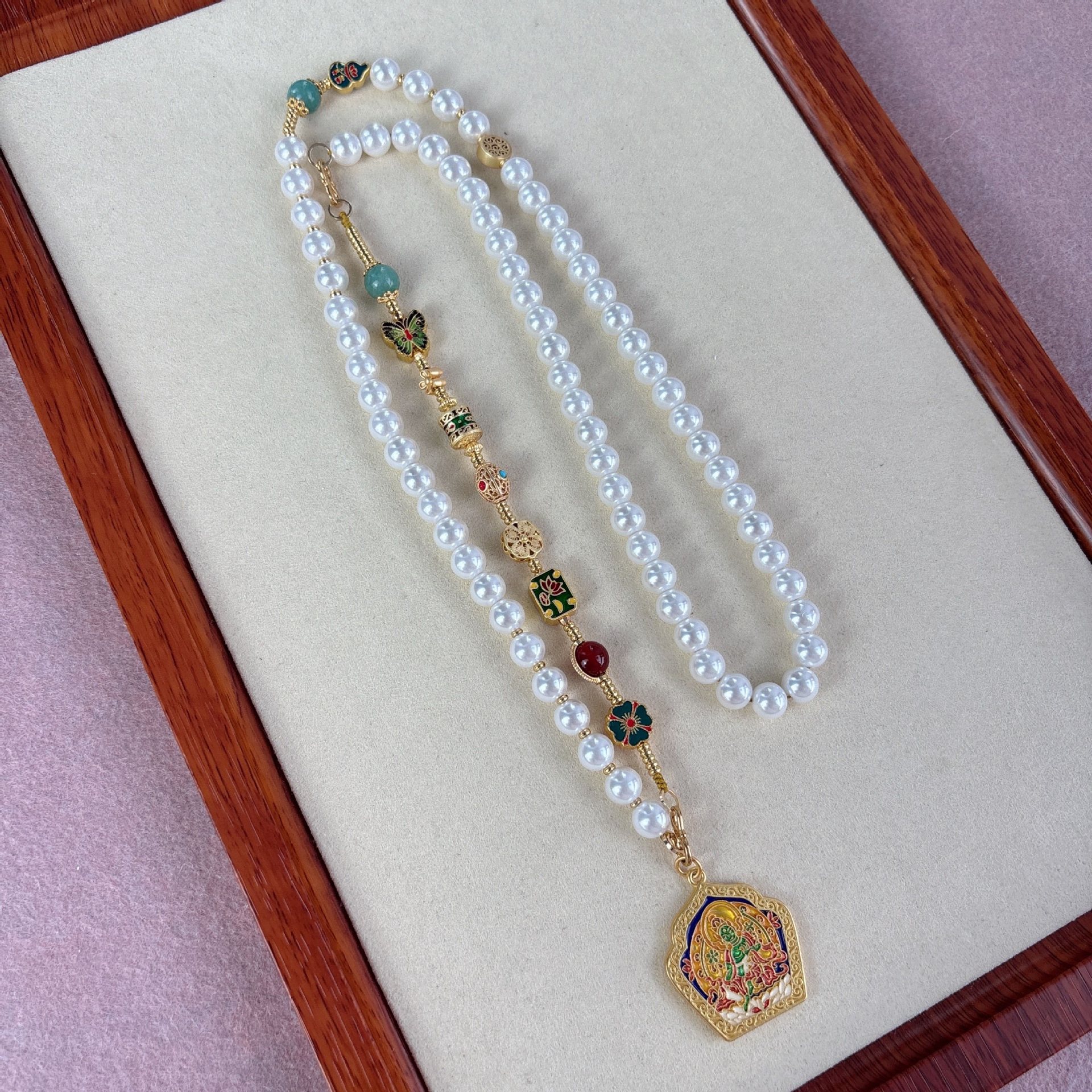 Ожерелье из нескольких сокровищ из жемчуга; Жемчужное колье «Зеленая Тара» с подвеской; Ожерелье из идеальной жемчужины «Пять благословений» с подвеской