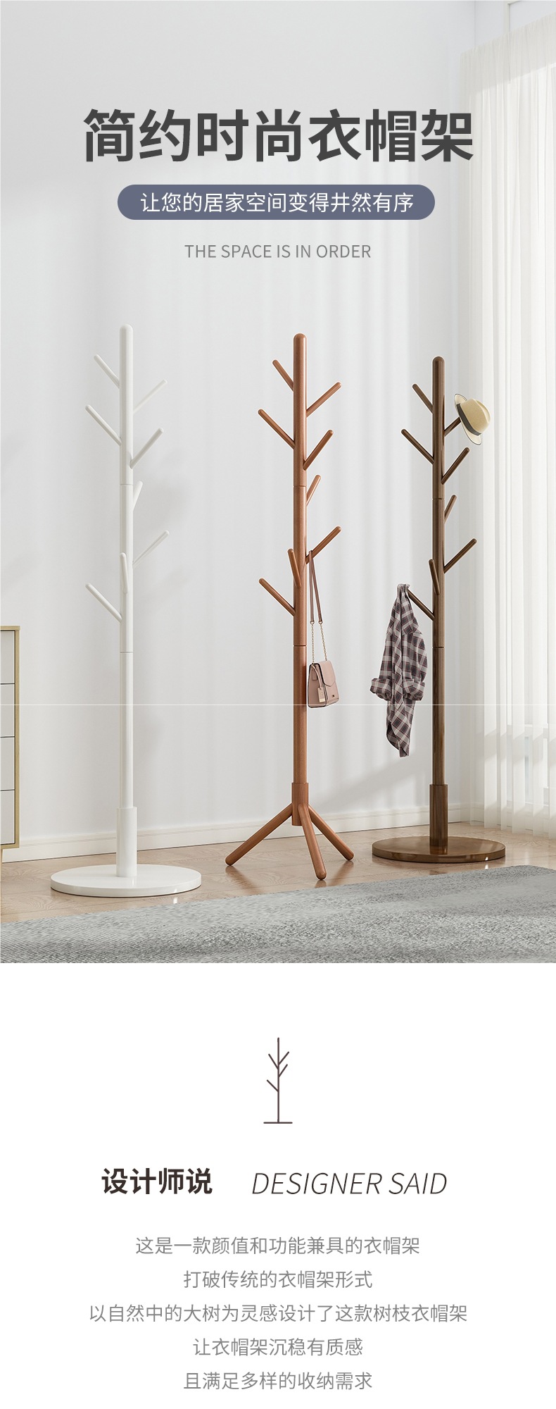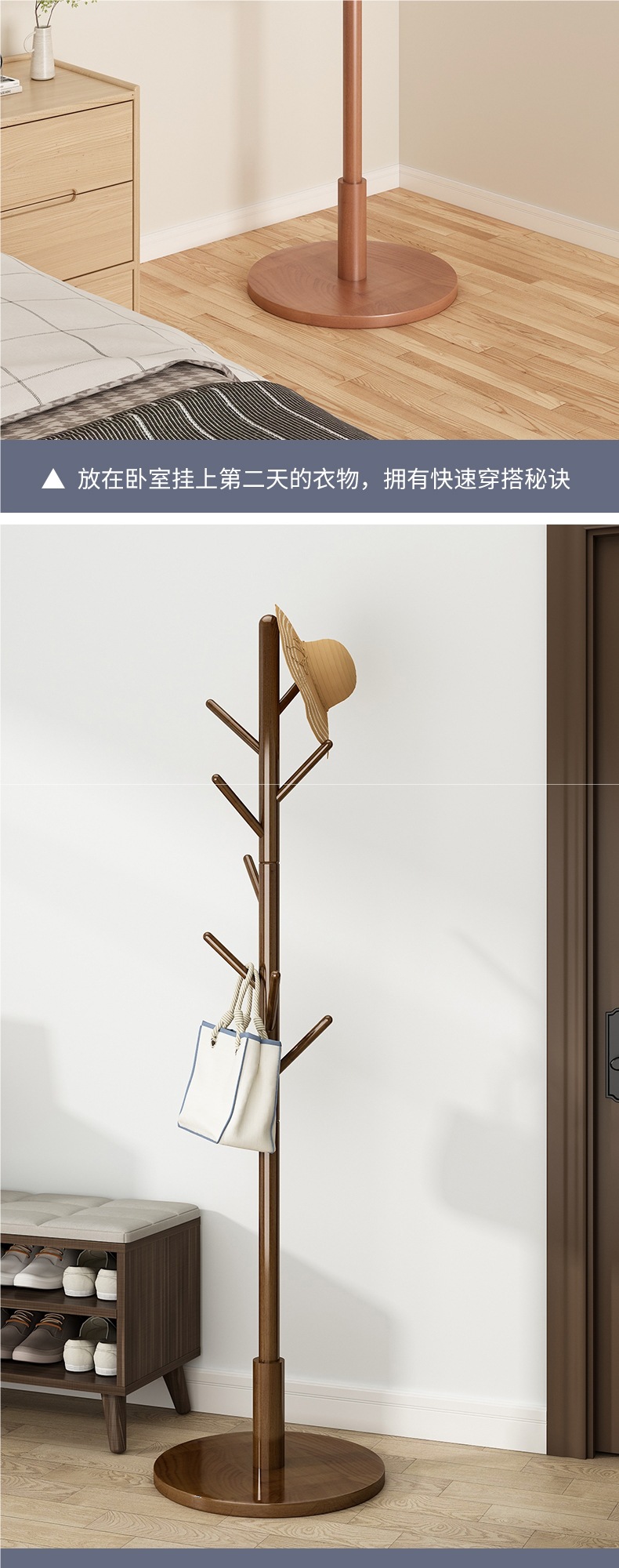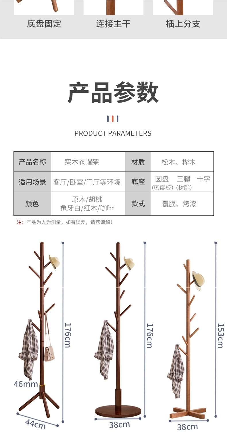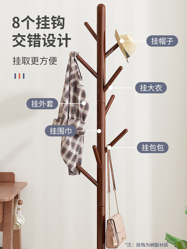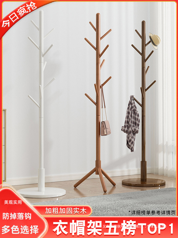 Напольная вешалка для одежды из массива дерева, встроенная в спальню, для гостиной, бытовая однополюсная вертикальная простая вешалка для сумок