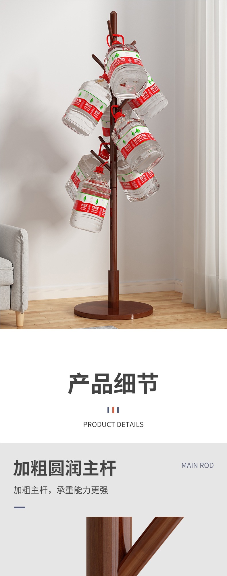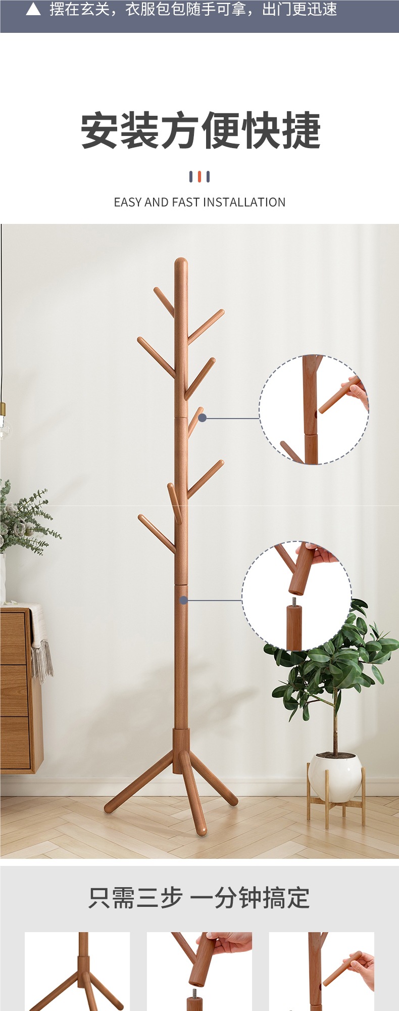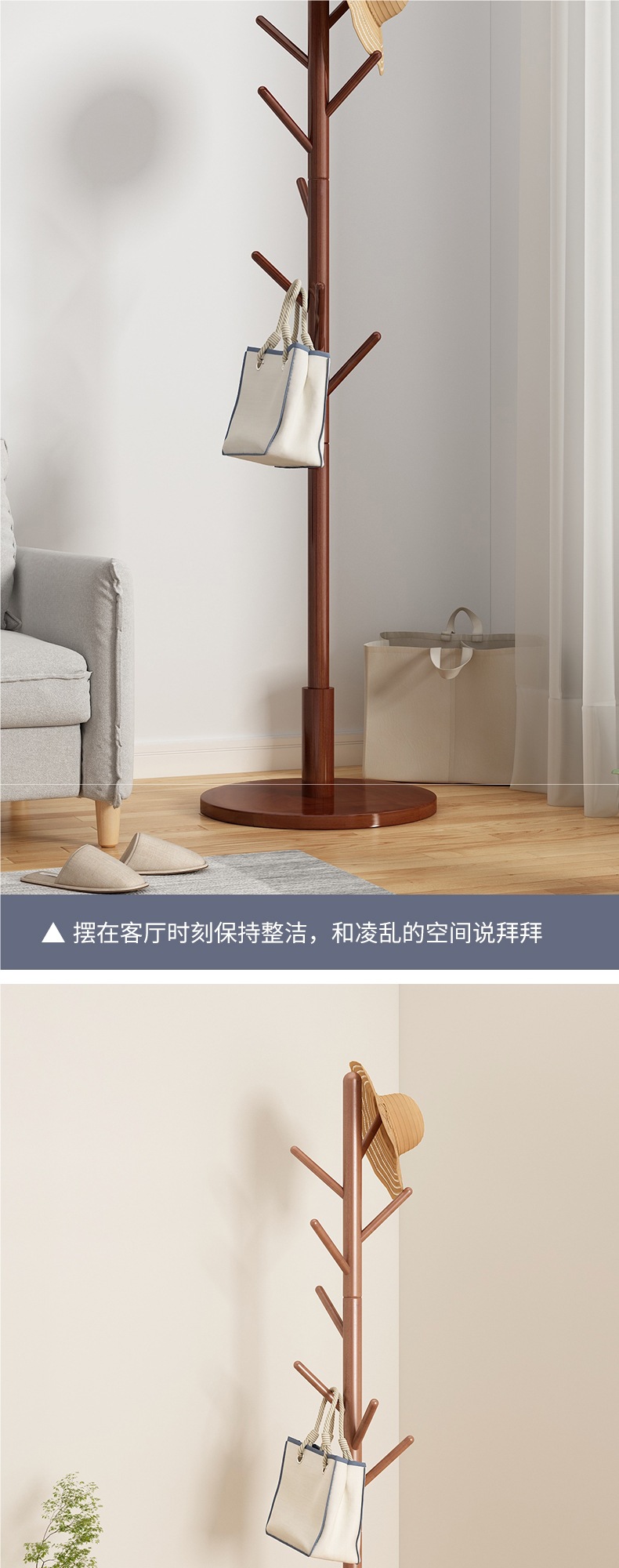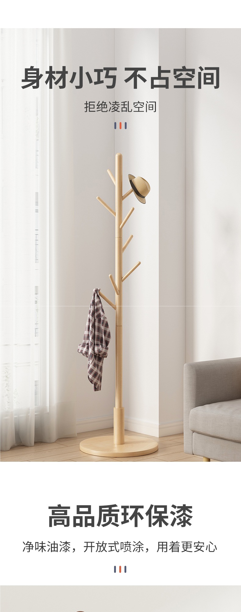 Напольная вешалка для одежды из массива дерева, встроенная в спальню, для гостиной, бытовая однополюсная вертикальная простая вешалка для сумок