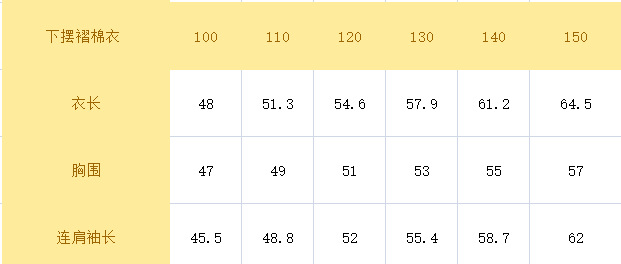 100cm; 110cm; 120cm; 130cm; 140cm; 150cm