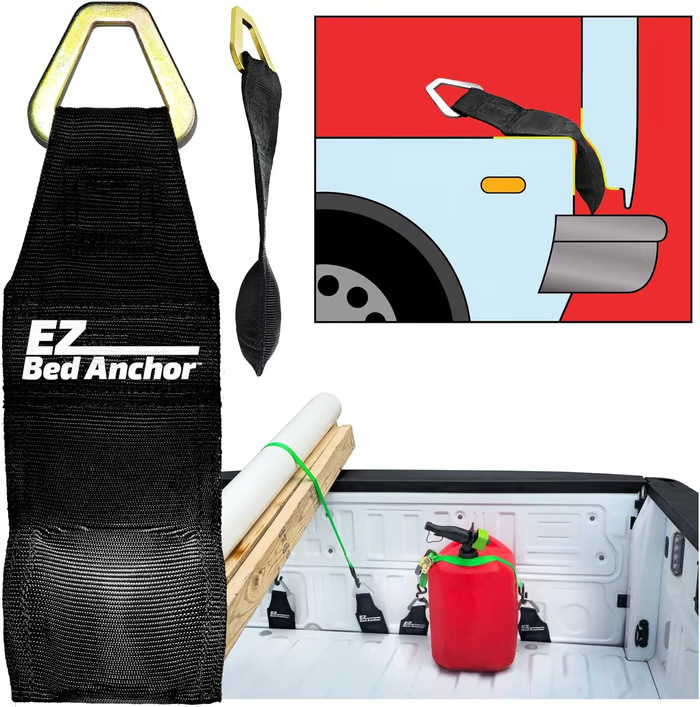 Крепление EZ Bed Anchor для крепления ремней безопасности, стяжных ремней или грузовых ремней к задней двери кузова грузовика.
