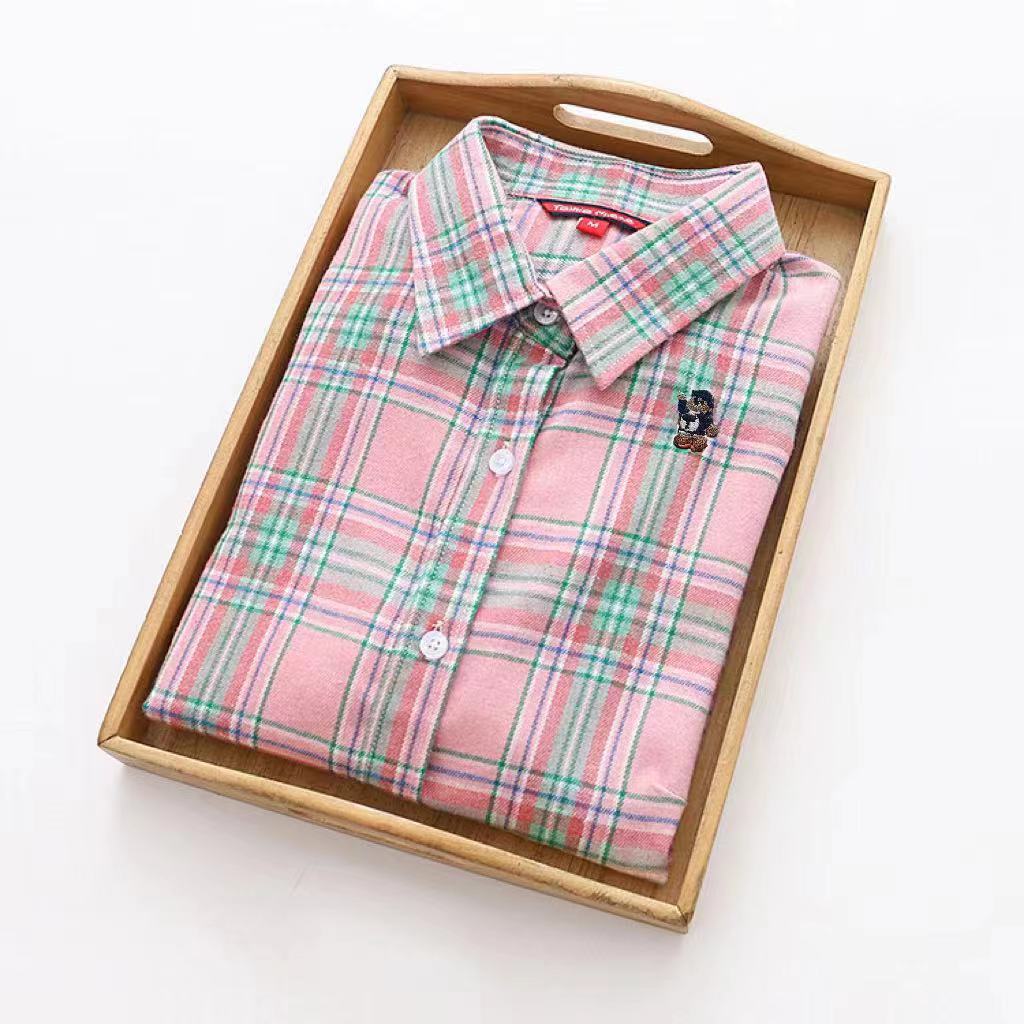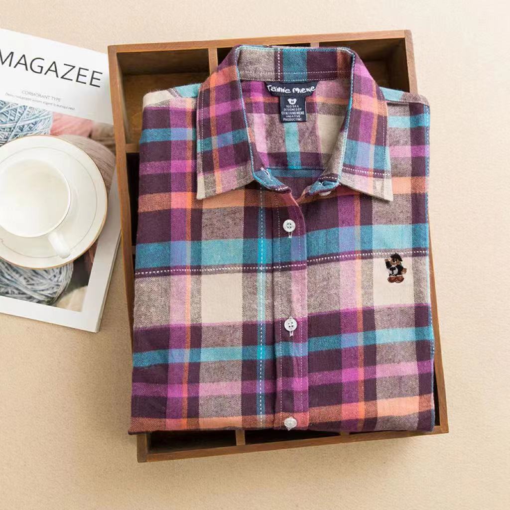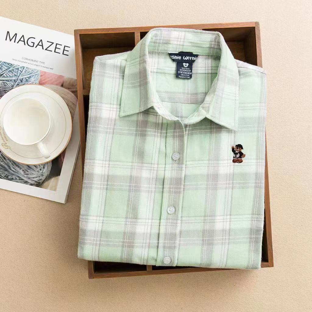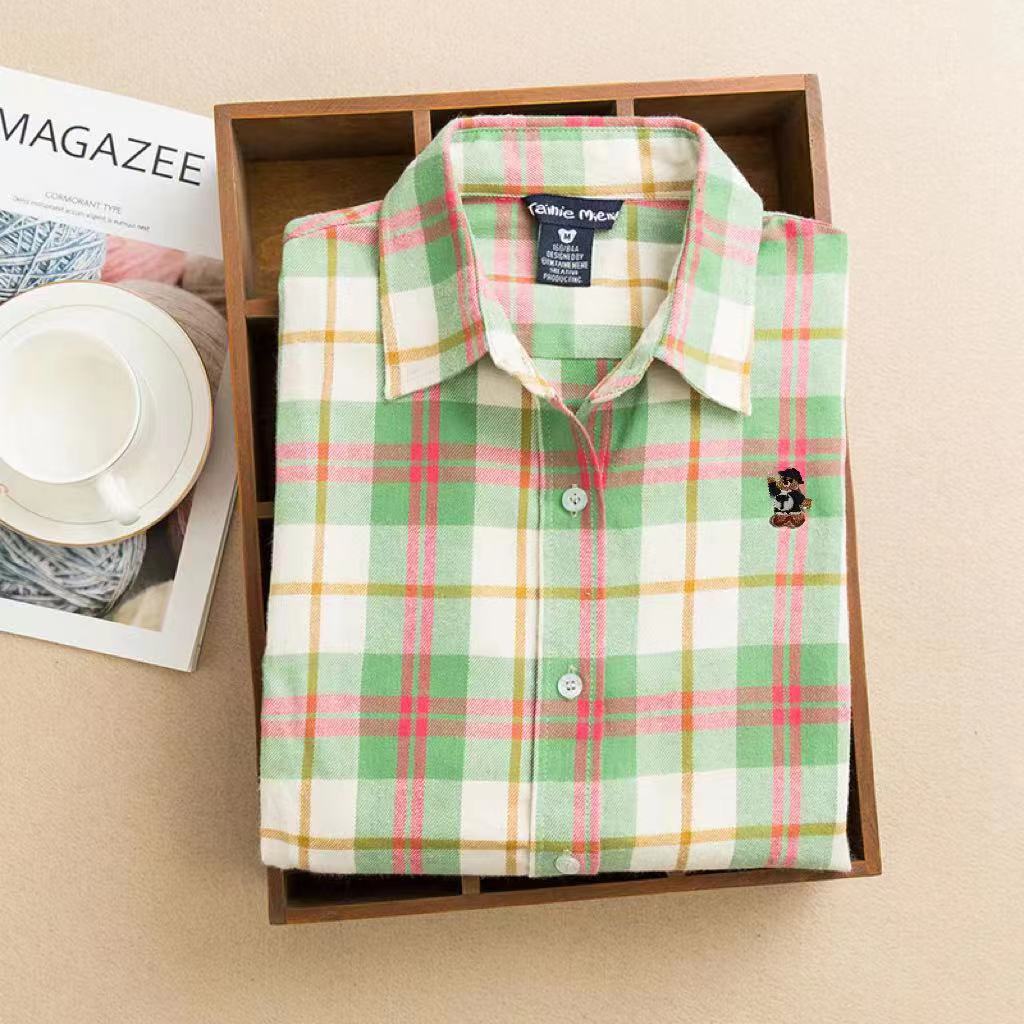 2025 Весна и осень, новый стиль, рубашка в клетку с длинным рукавом, женская рубашка в корейском стиле, легкая в сочетании, рубашка в клетку из чистого хлопка, фланель