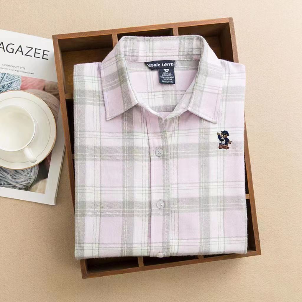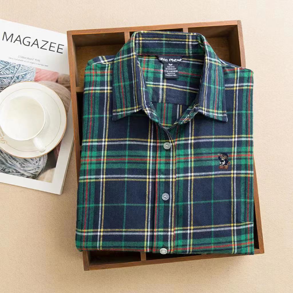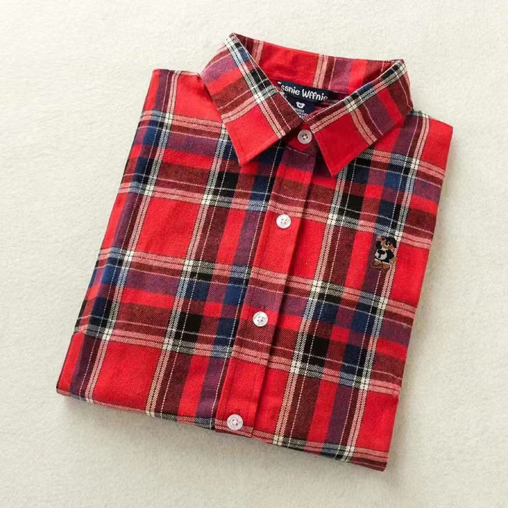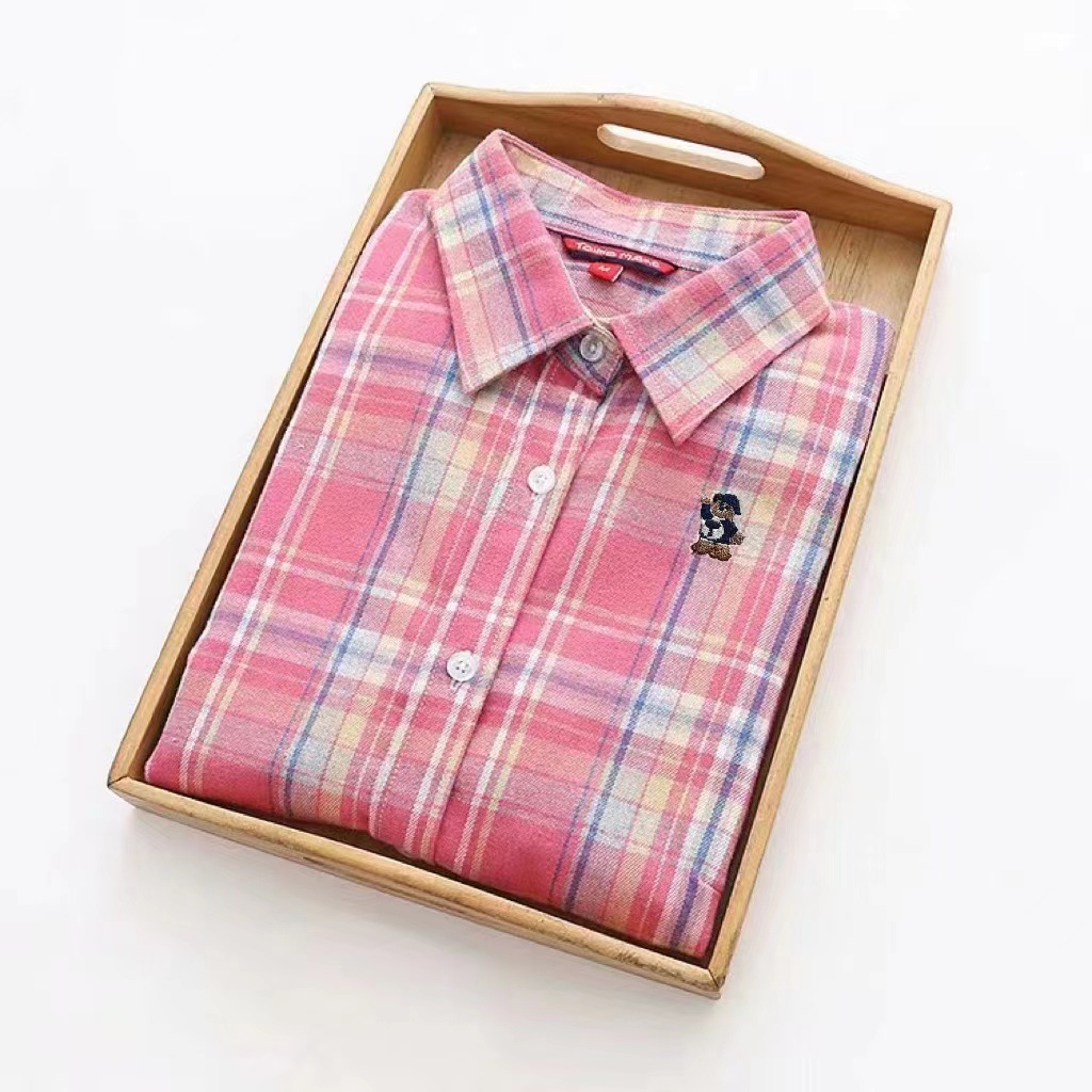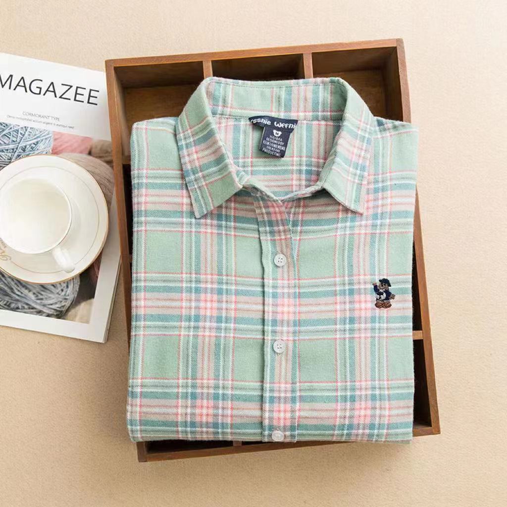 2025 Весна и осень, новый стиль, рубашка в клетку с длинным рукавом, женская рубашка в корейском стиле, легкая в сочетании, рубашка в клетку из чистого хлопка, фланель