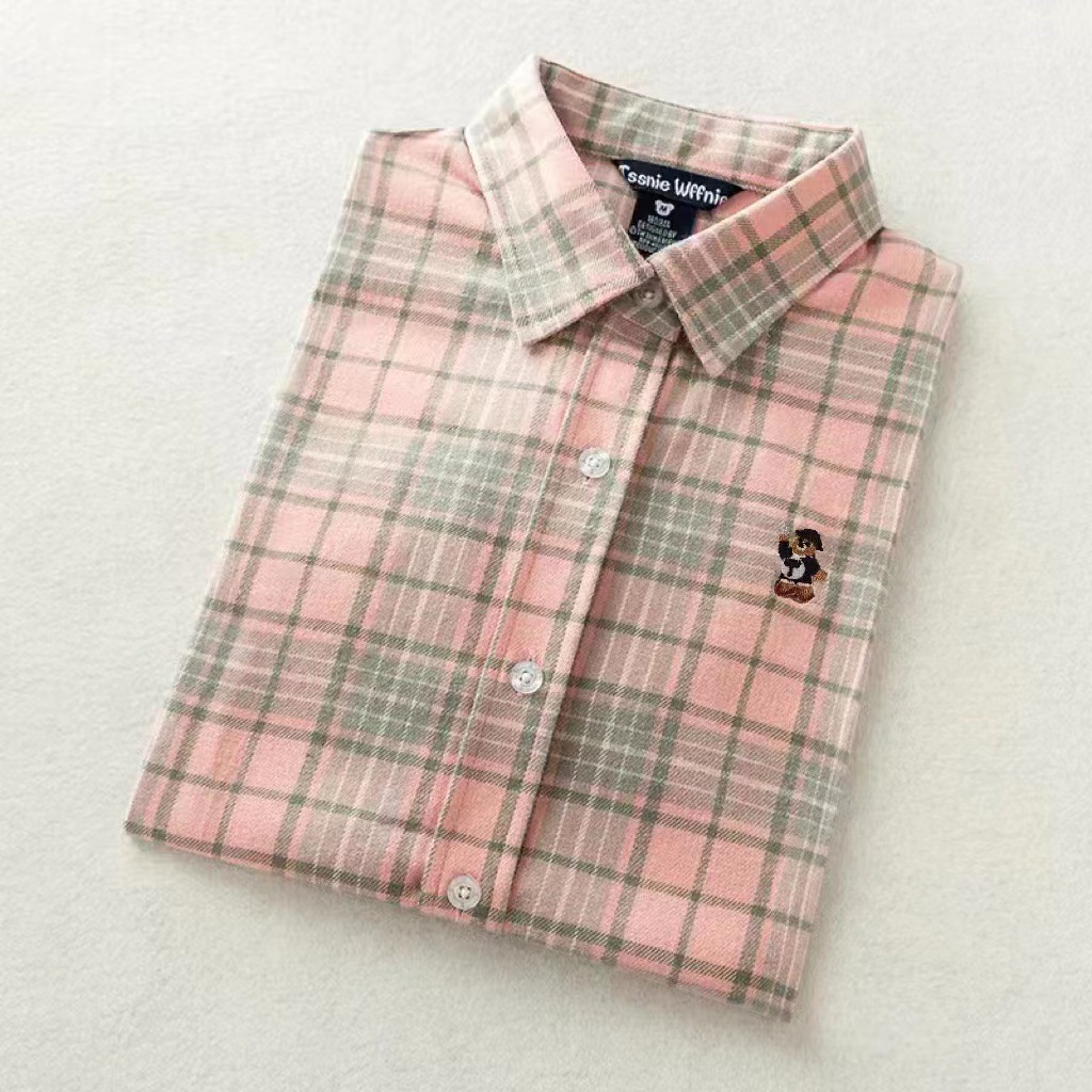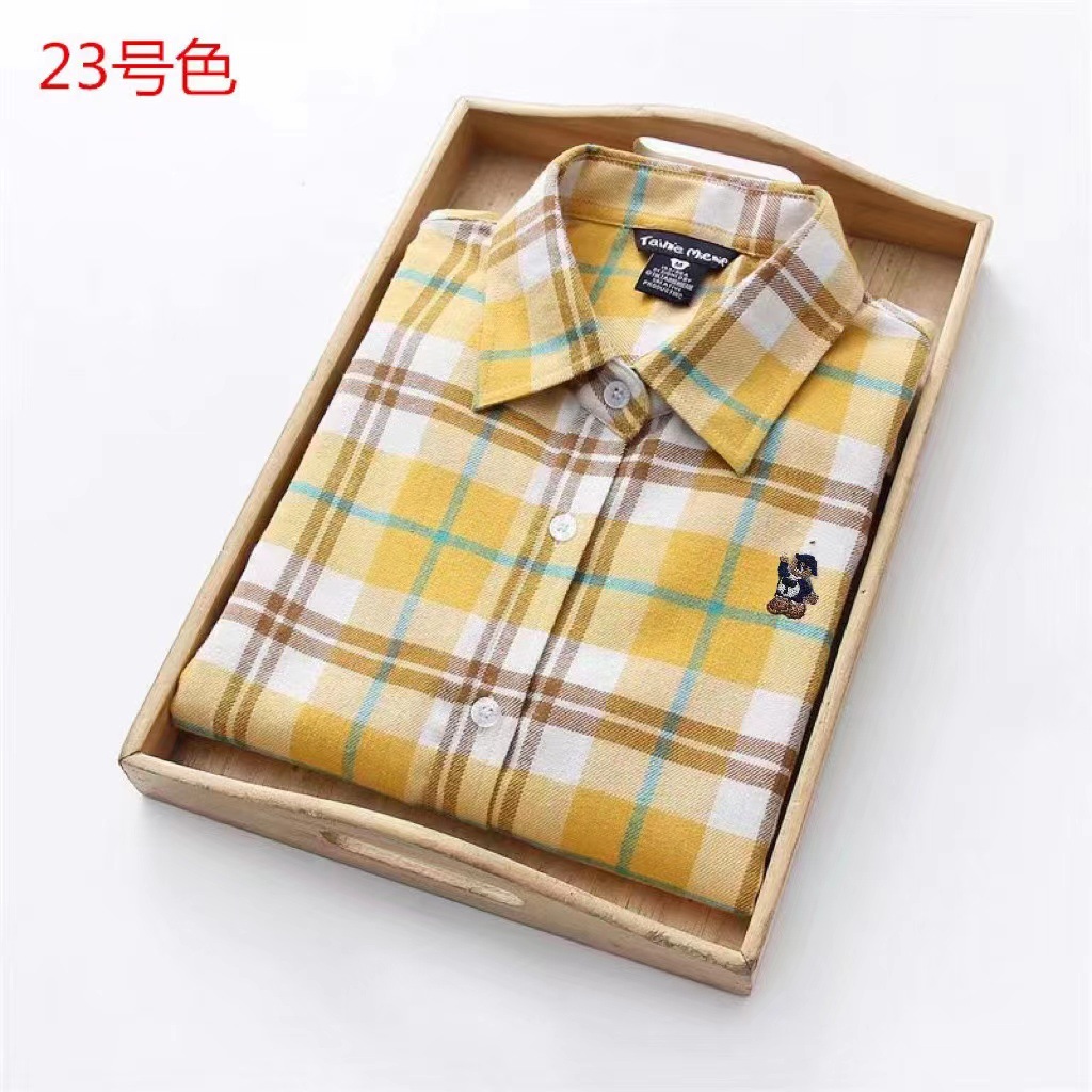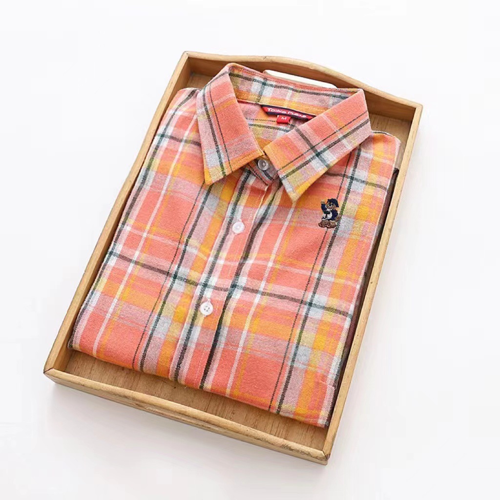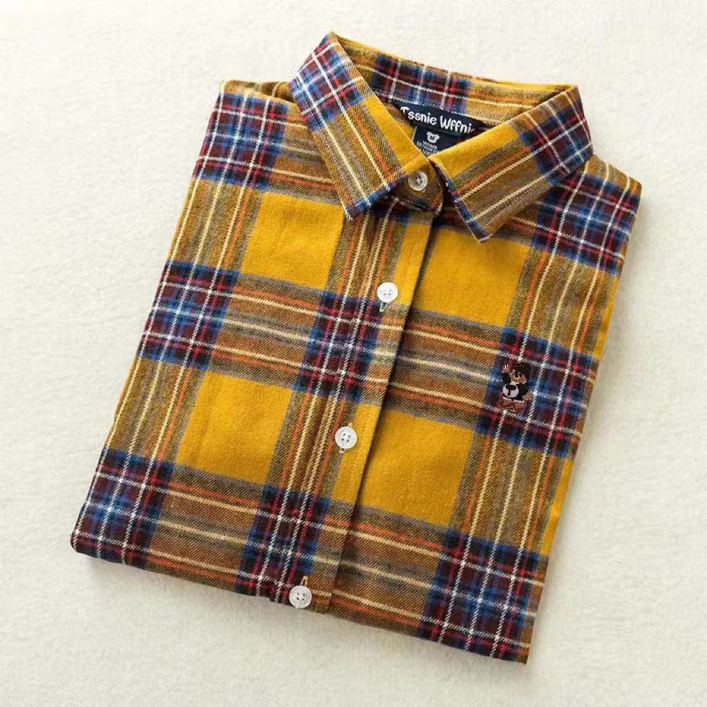 2025 Весна и осень, новый стиль, рубашка в клетку с длинным рукавом, женская рубашка в корейском стиле, легкая в сочетании, рубашка в клетку из чистого хлопка, фланель