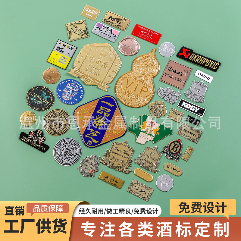 Металлическая табличка для духов с индивидуальным печатным логотипом, стеклянная бутылка для ароматических свечей, изогнутая медная печать, самоклеящаяся алюминиевая этикетка
