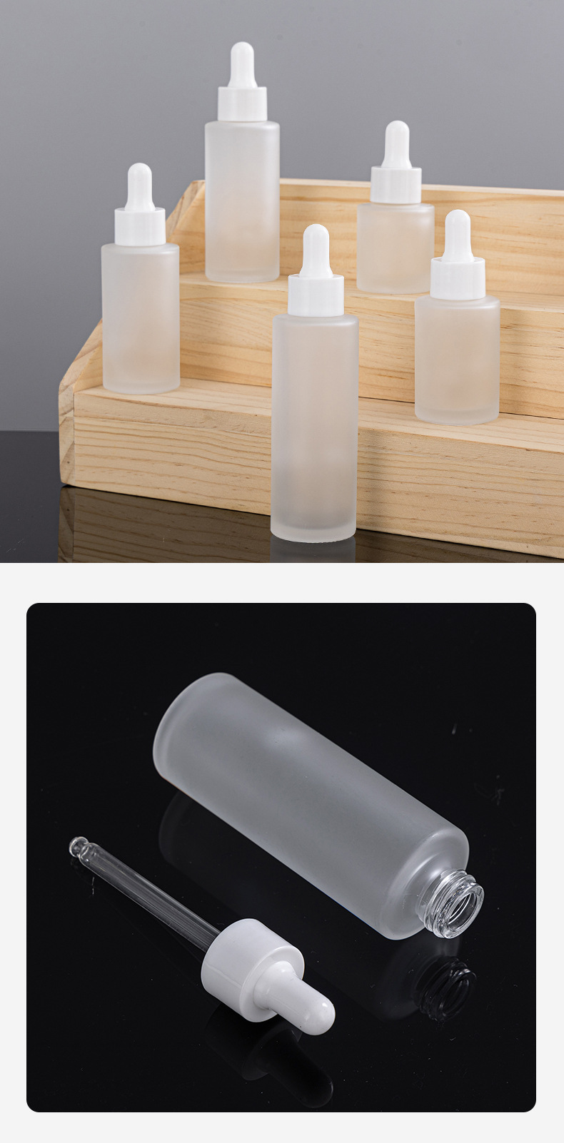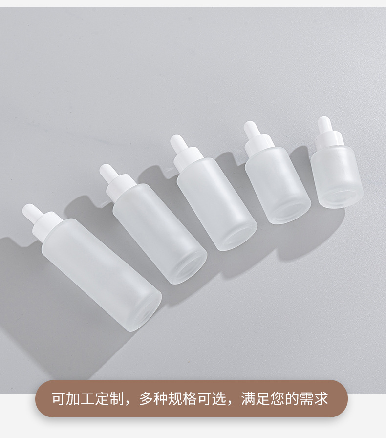 В наличии: флакон для эфирных масел 30 мл, матовый, прямой, круглый, с плоскими плечиками, из матового стекла, для сыворотки, с пластиковым дозатором-капельницей.