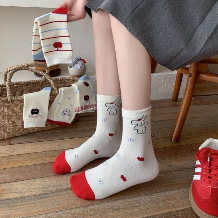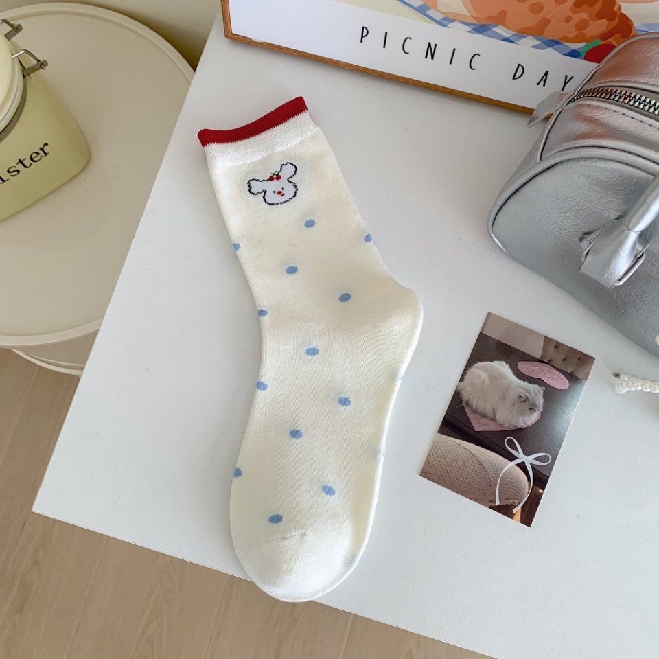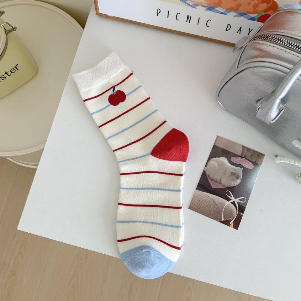 Летние модные тонкие кружевные носки до середины икры для женщин, милые полосатые носки, высокие студенческие носки в горошек с рисунком.