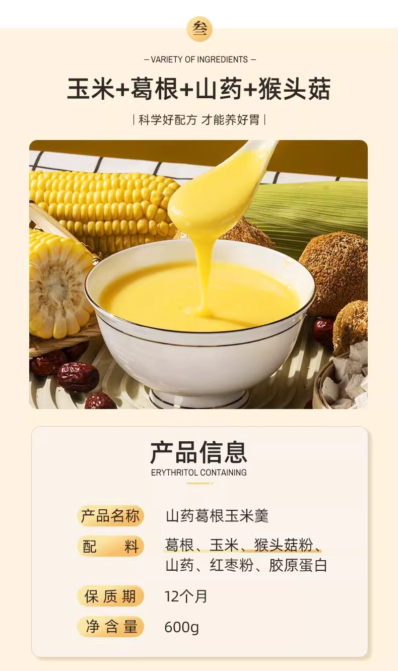Ямс, кудзу, порошок кукурузной суповой пасты, готовый к употреблению завтрак, питательная кукурузная паста, не содержащая пищеварительного желудка, заменитель пищи.