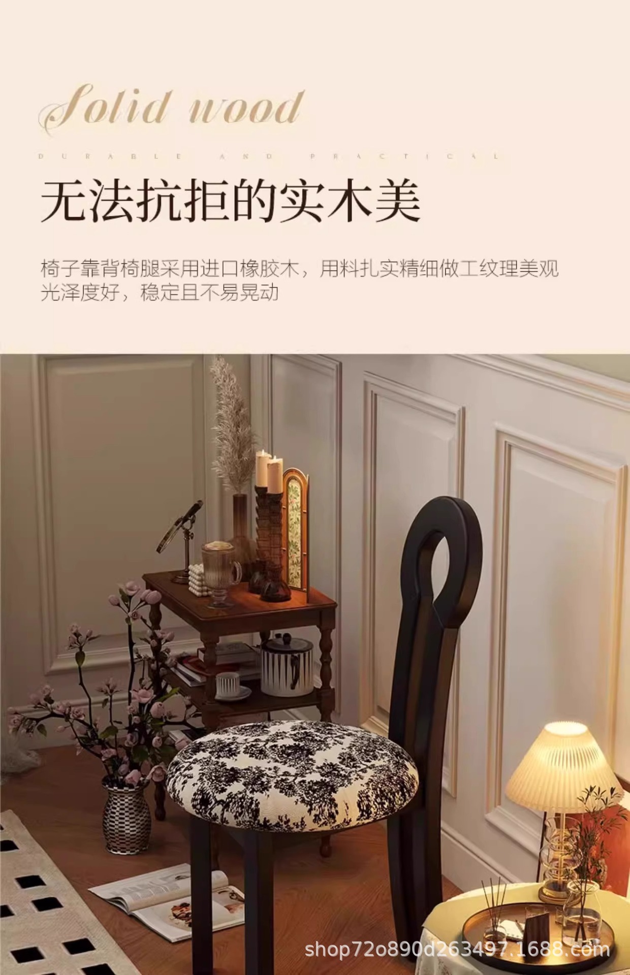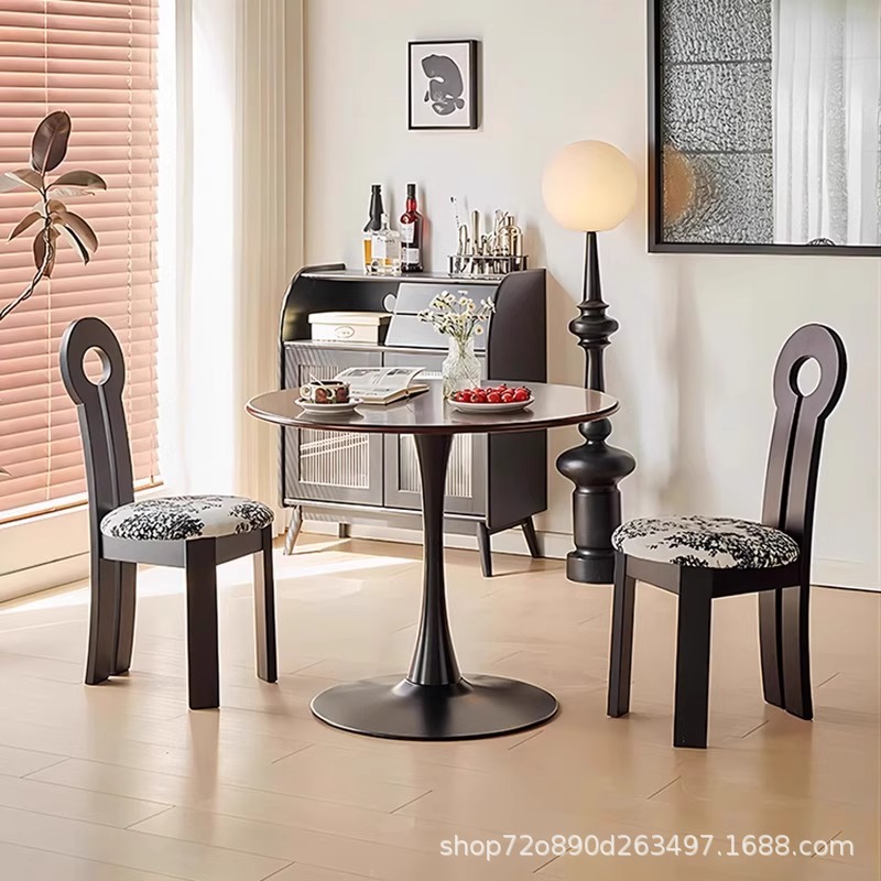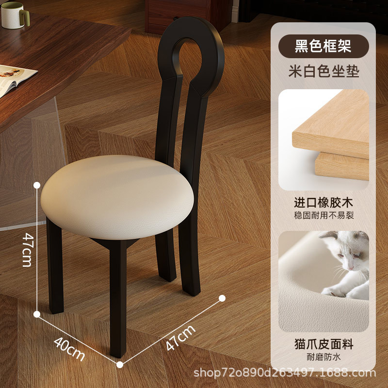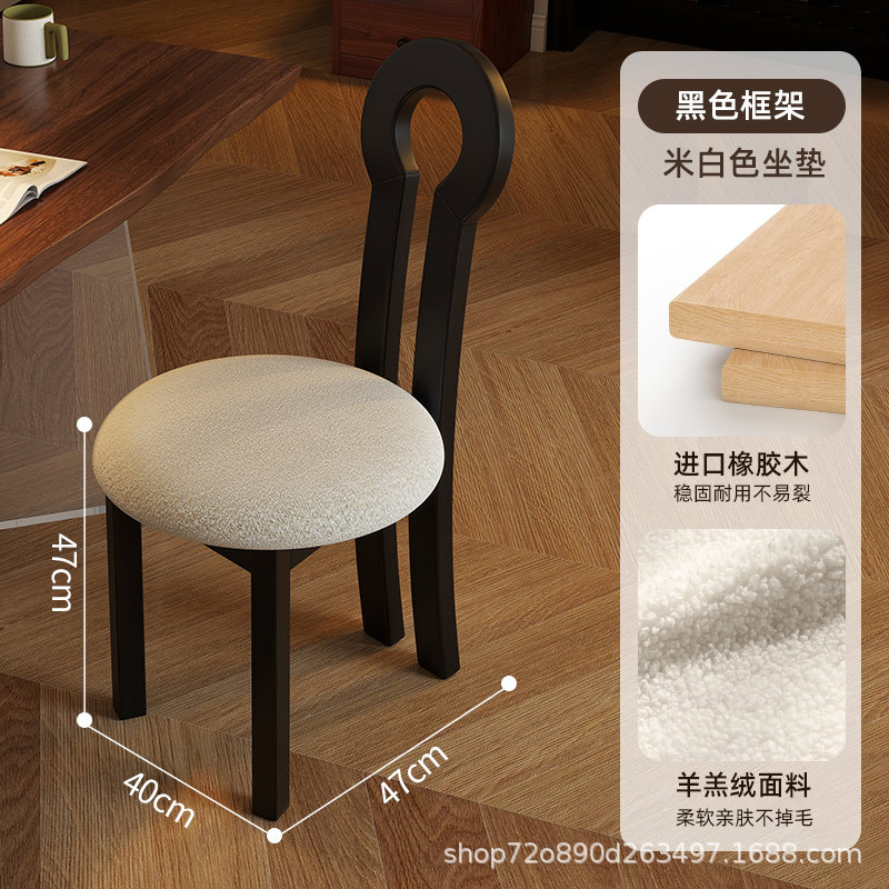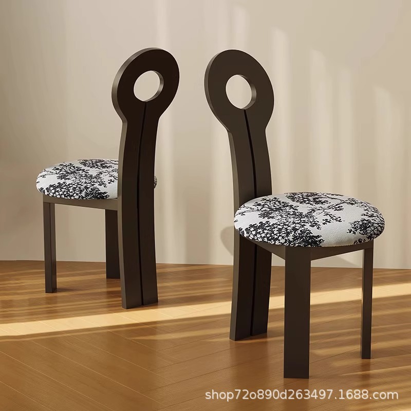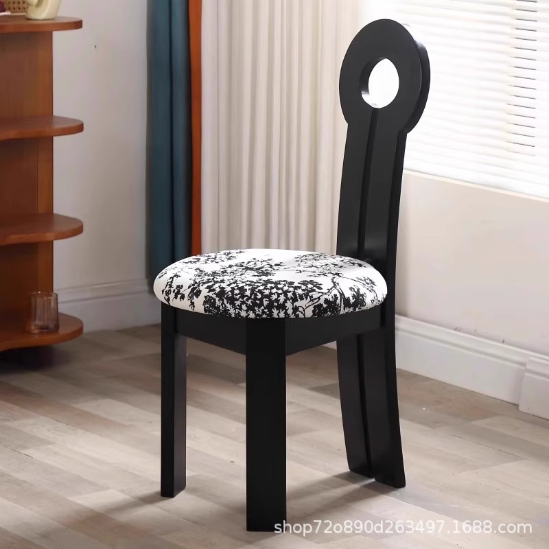 Винтажное домашнее кресло для макияжа середины века во французском стиле из цельного дерева со спинкой, креативное дизайнерское простое кресло для ключей из цельного дерева.