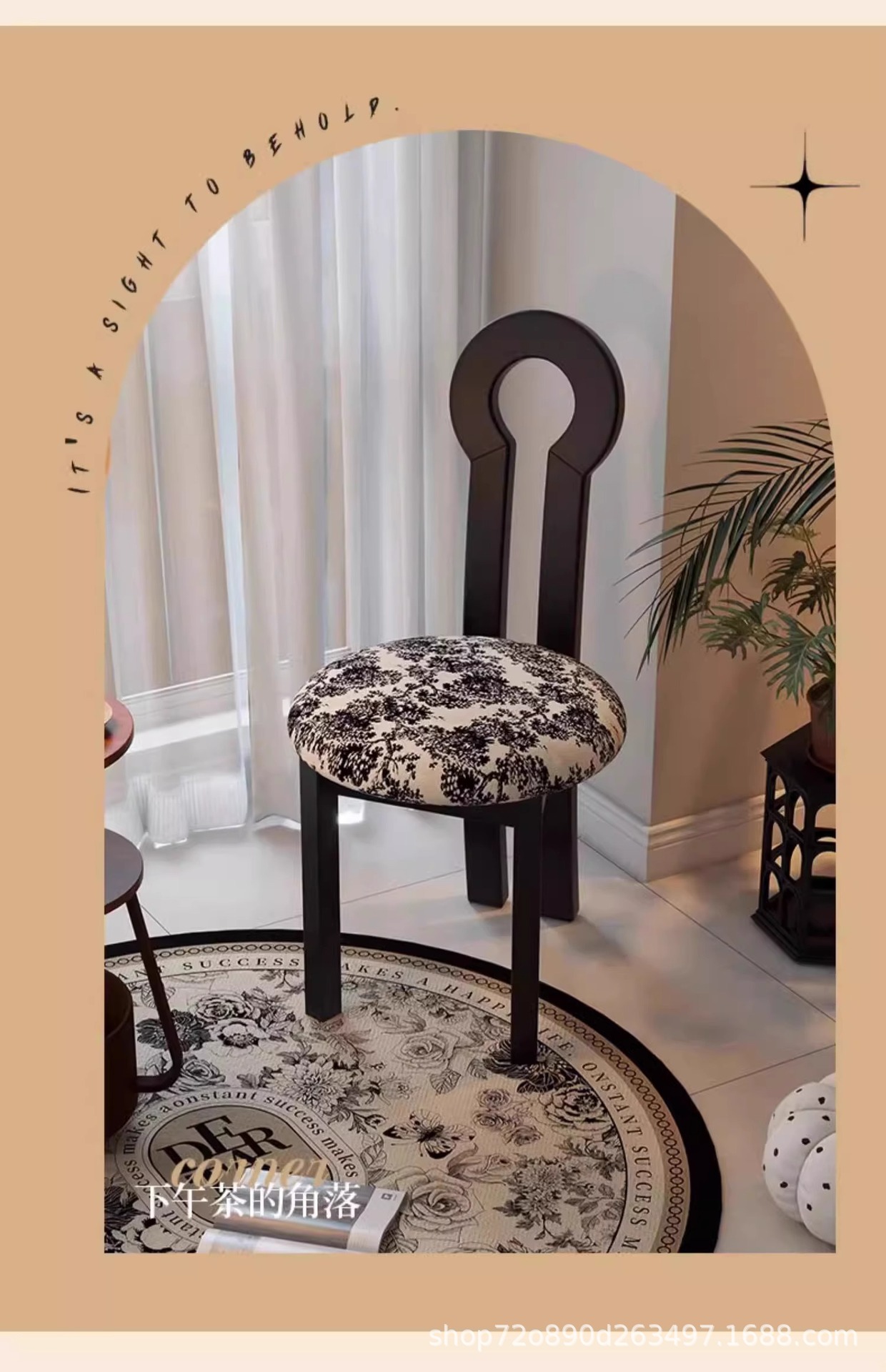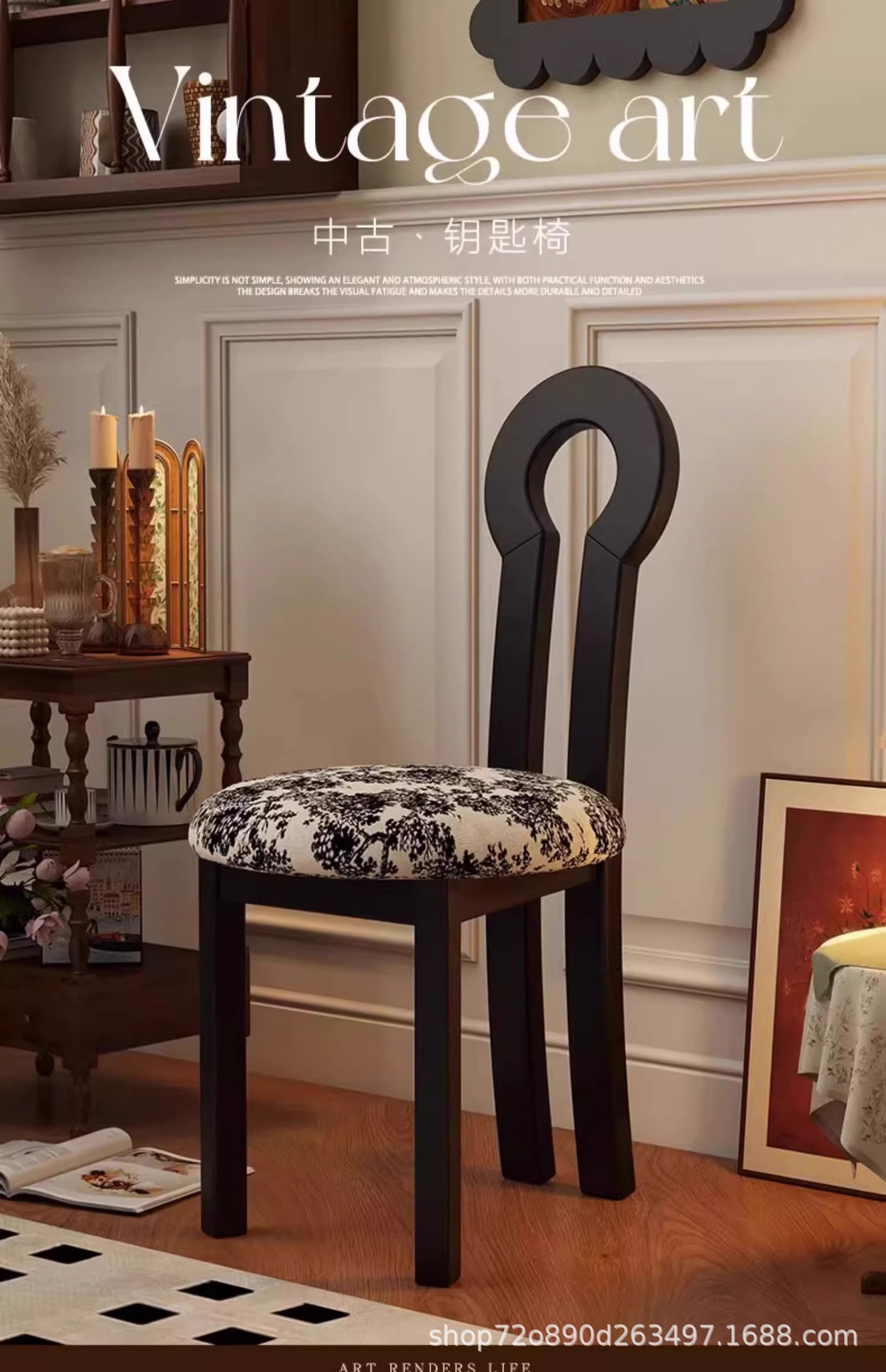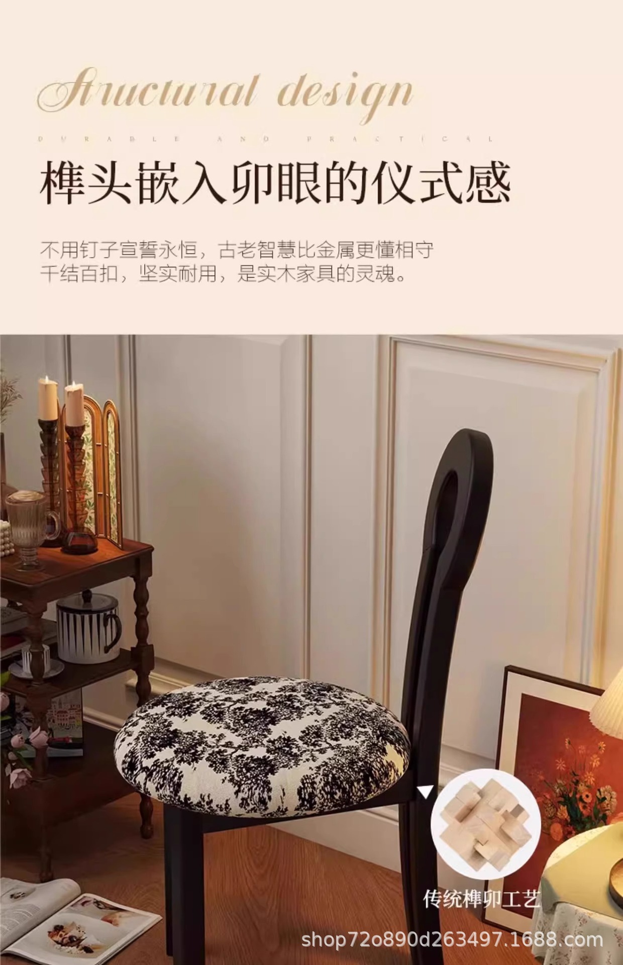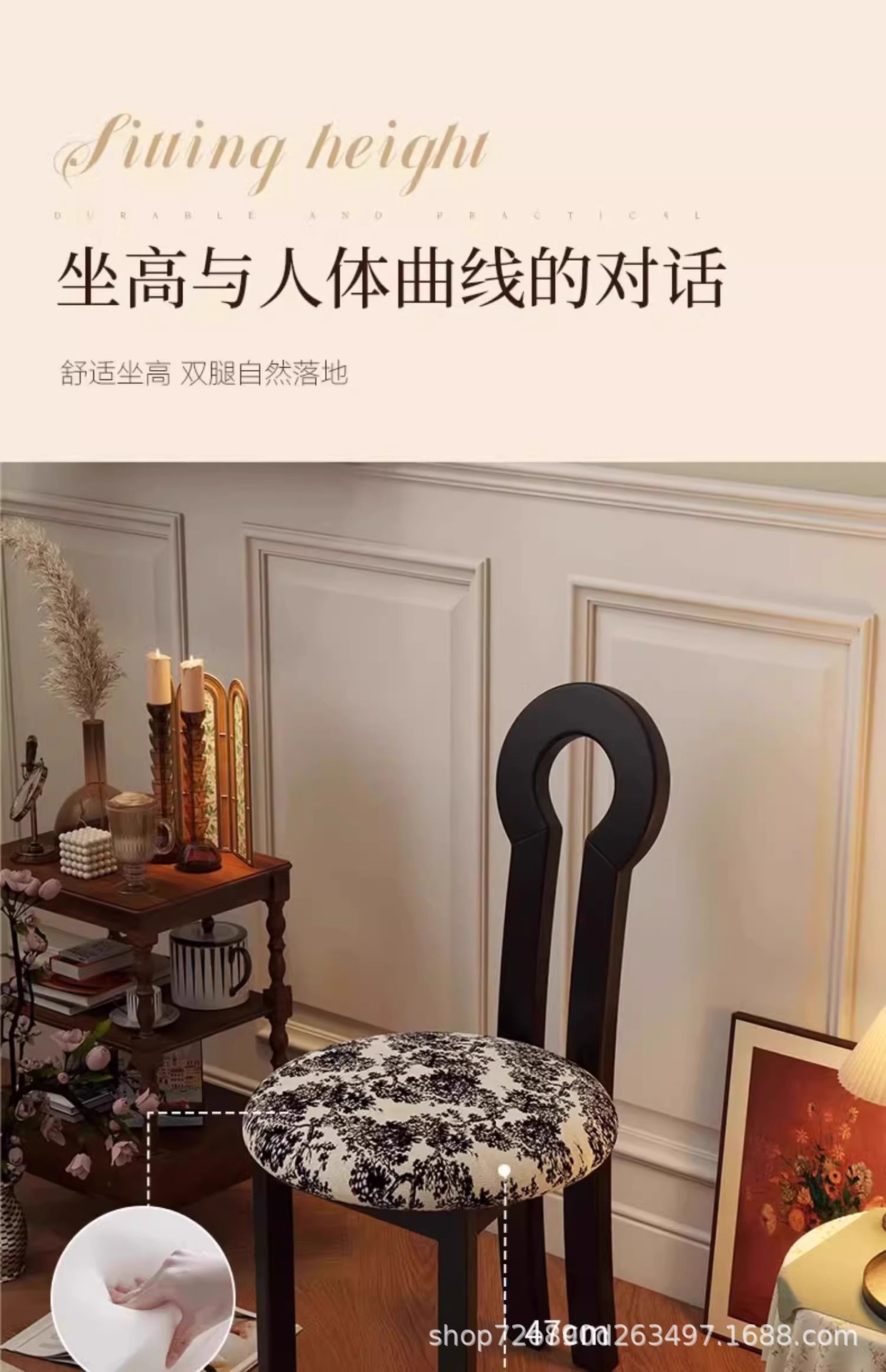 Винтажное домашнее кресло для макияжа середины века во французском стиле из цельного дерева со спинкой, креативное дизайнерское простое кресло для ключей из цельного дерева.