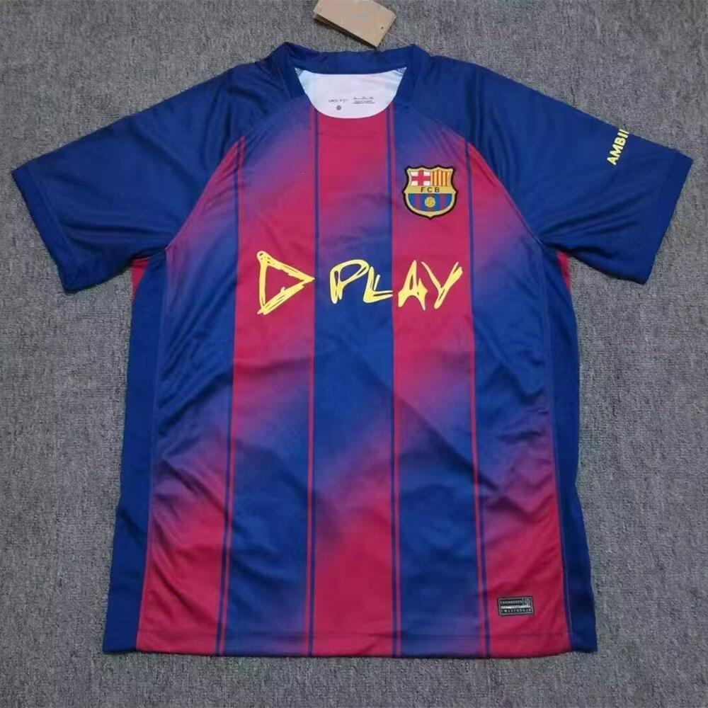 Оптовая продажа футболки Барселоны 2526, домашняя, короткая, специальная версия Travis, предматчевая футбольная форма