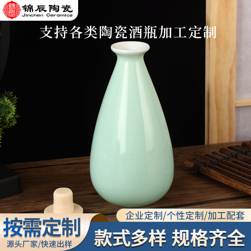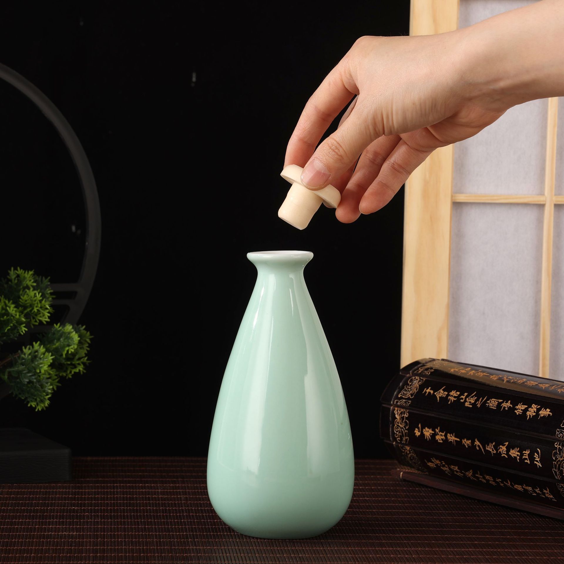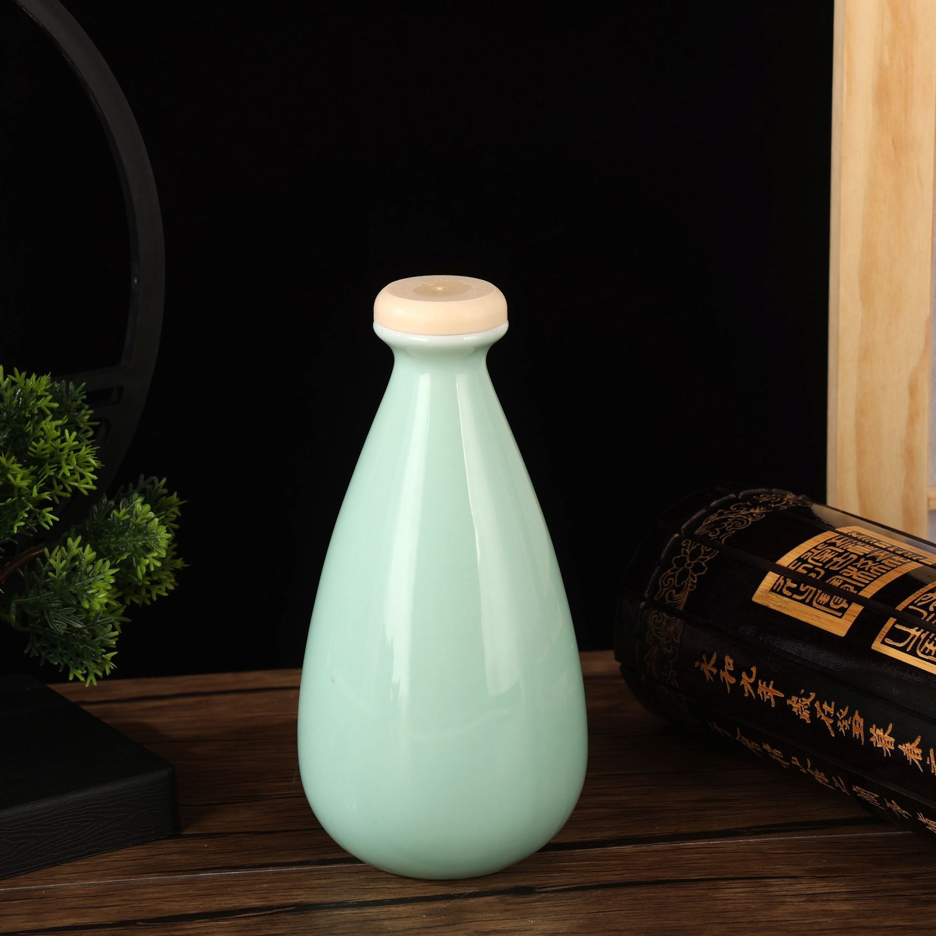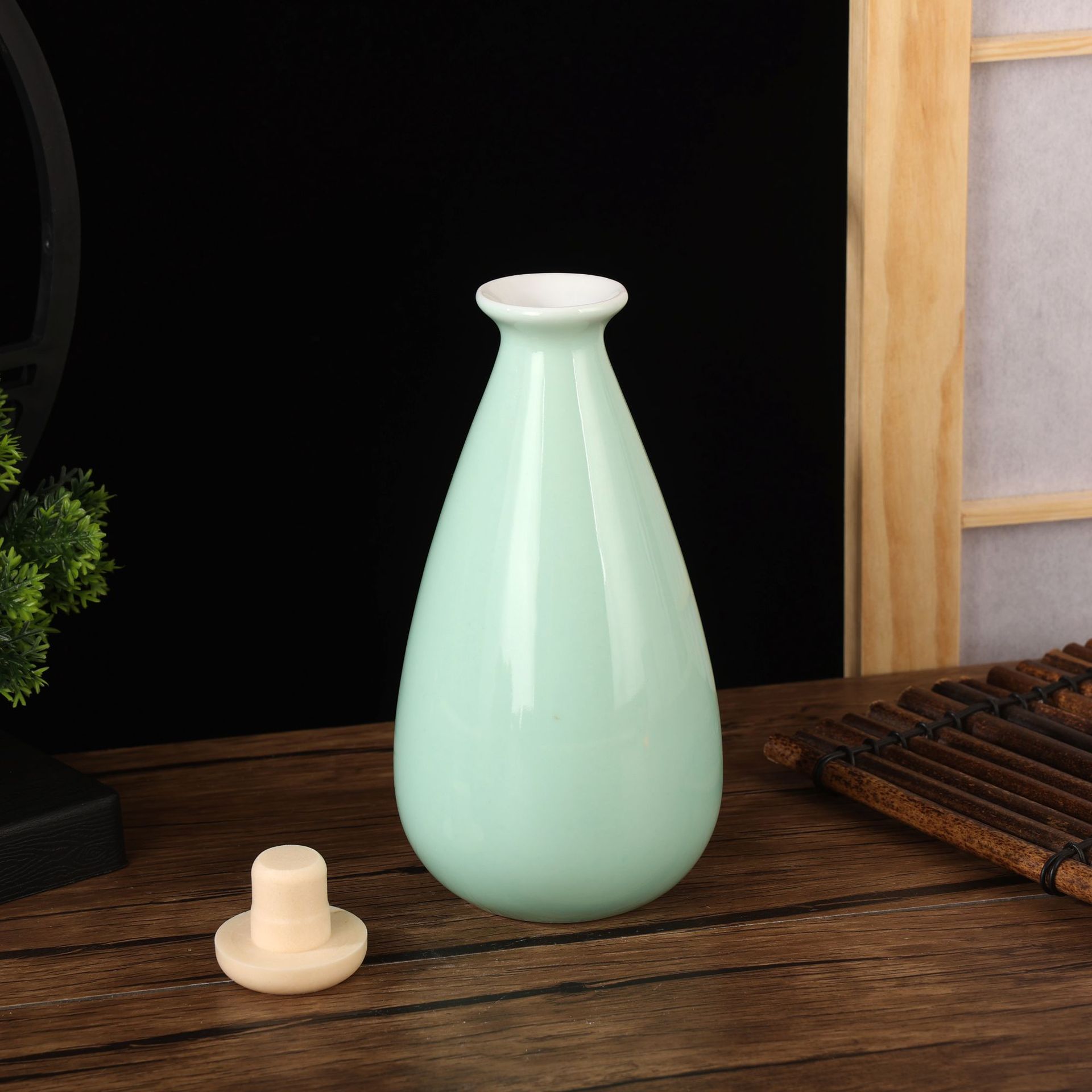 В наличии - керамический графин для вина из Цзиндэчжэня, полулитровый, теплого нефритового цвета, пустой, в ретро-стиле, ручной работы.