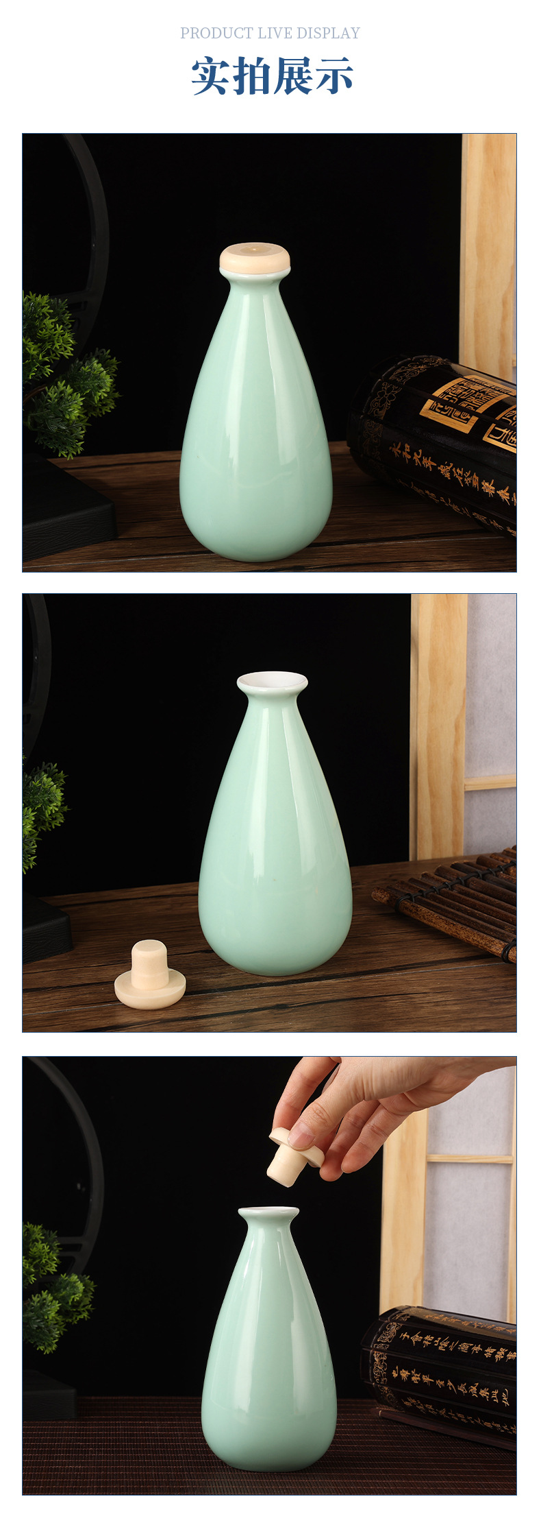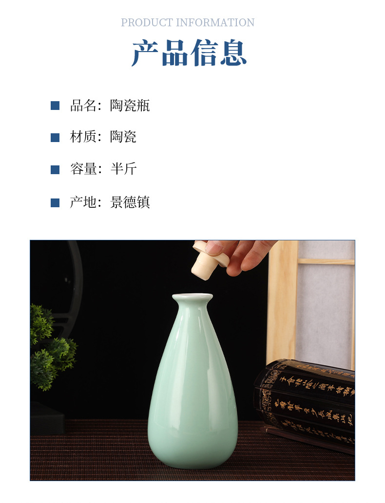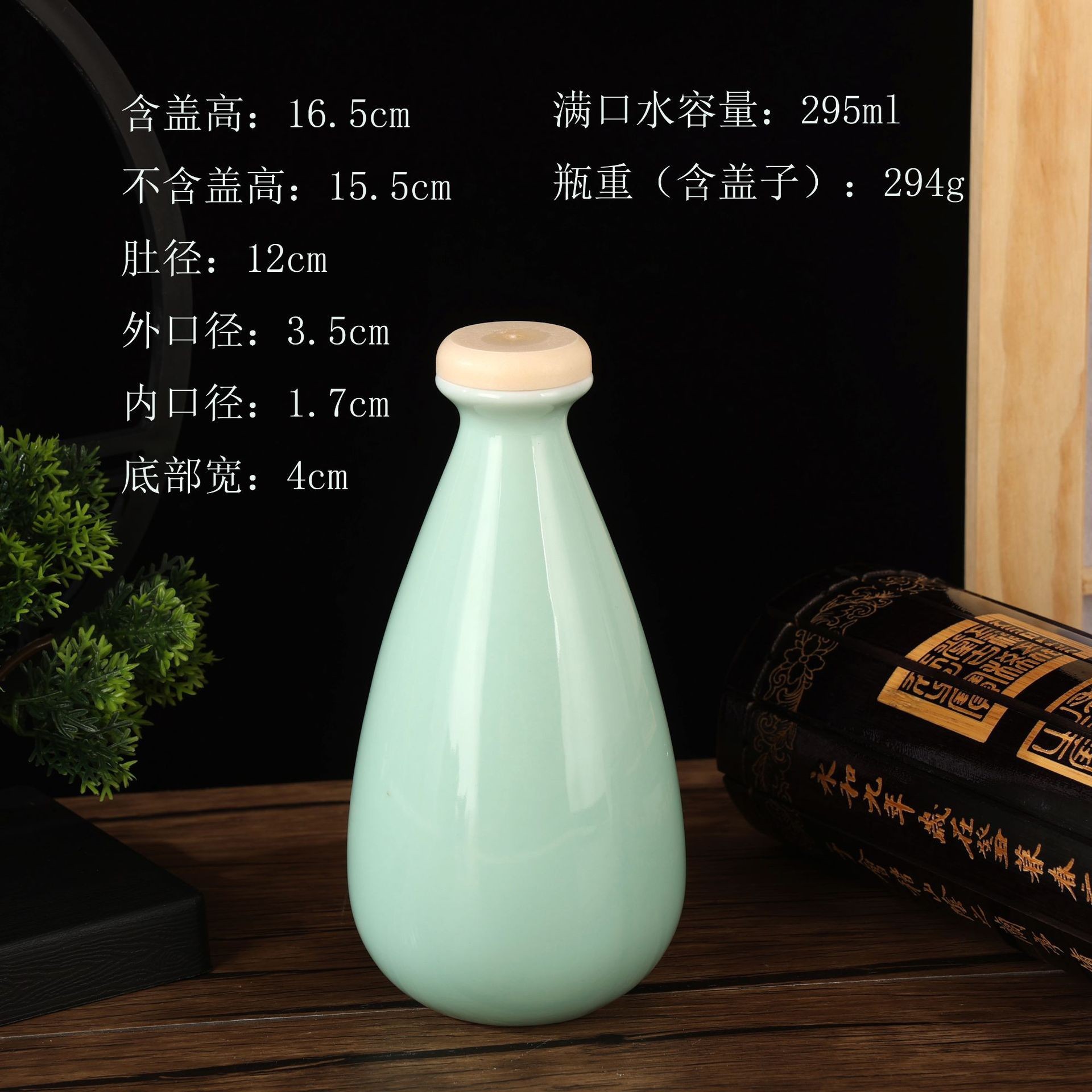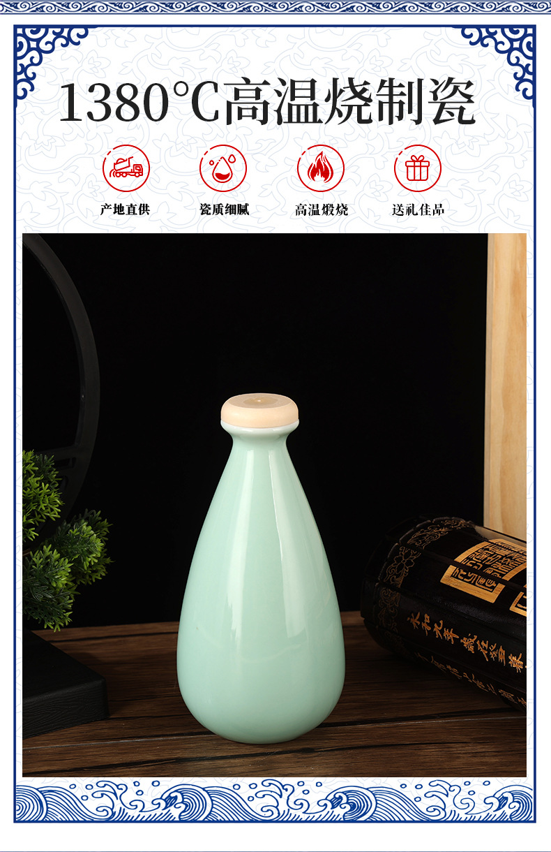 В наличии - керамический графин для вина из Цзиндэчжэня, полулитровый, теплого нефритового цвета, пустой, в ретро-стиле, ручной работы.