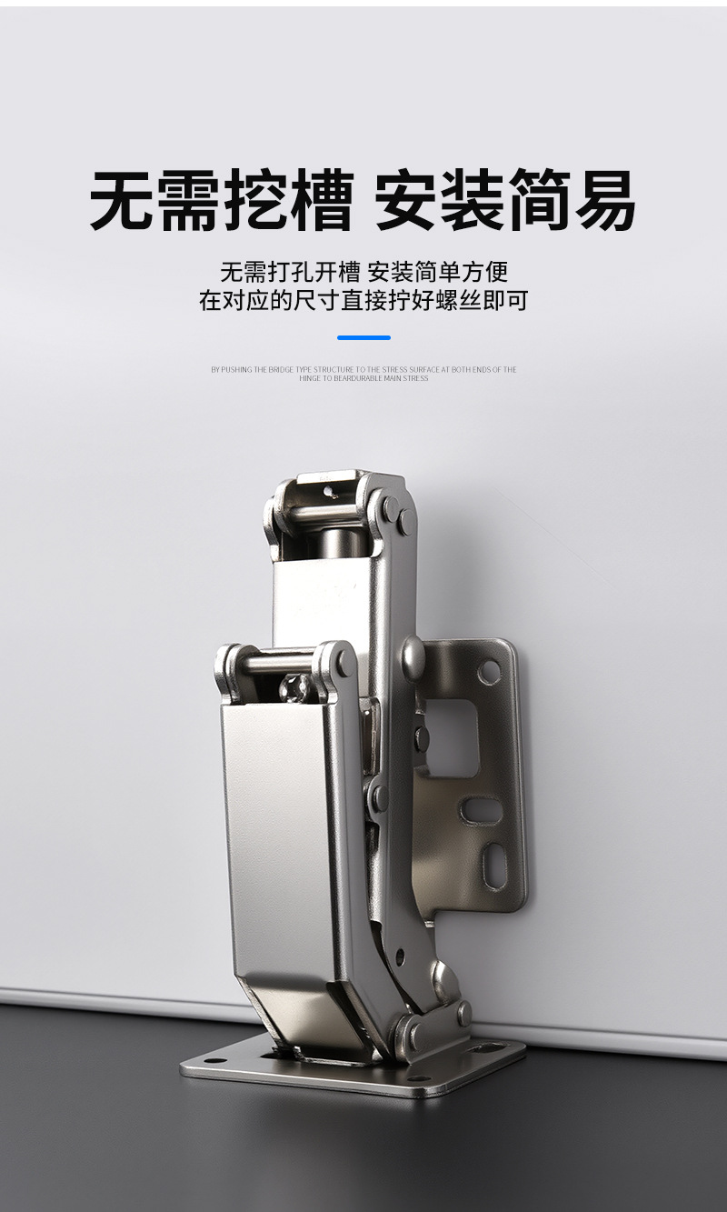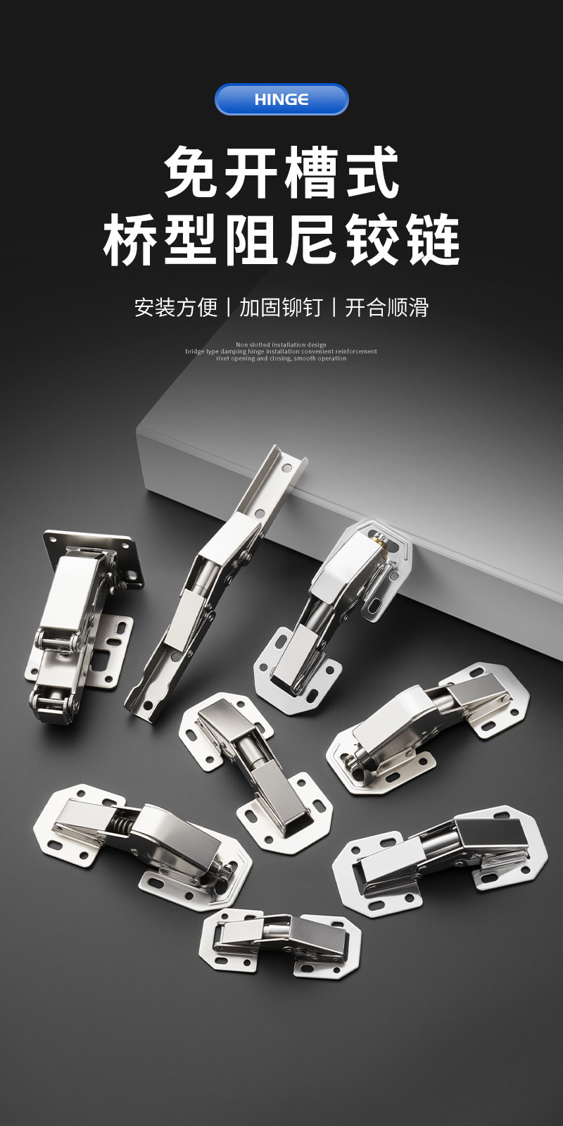 Накладная дверца шкафа, дверца шкафа, гидравлическая демпфирующая петля-лягушка без отверстий для открывания, без пазов, буферная петля мостового типа