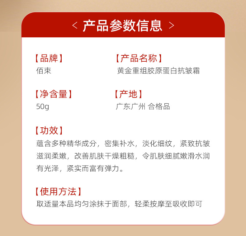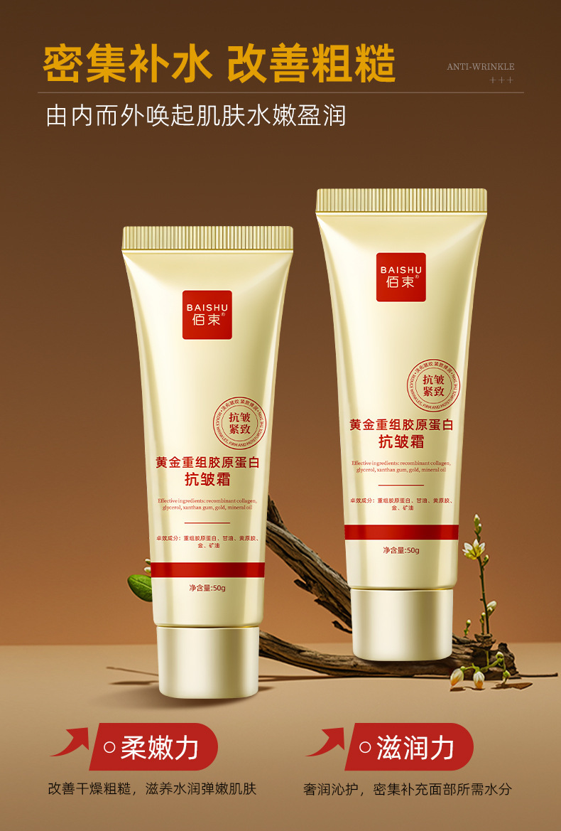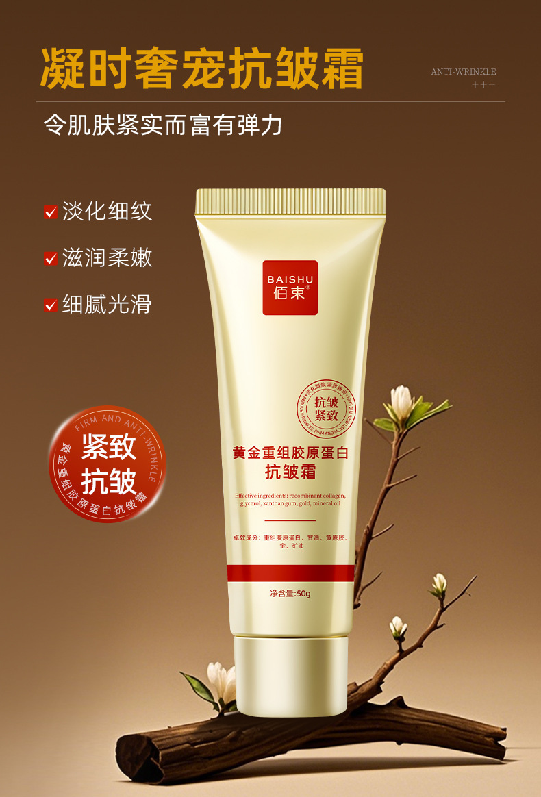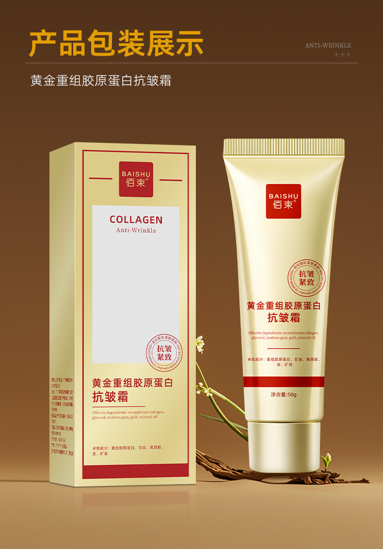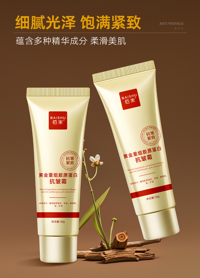 Ba Shu Gold Collagen Крем против морщин Против морщин, исчезновение тонких линий, улучшение сухости, увлажнение, укрепление и эластичность 50 г