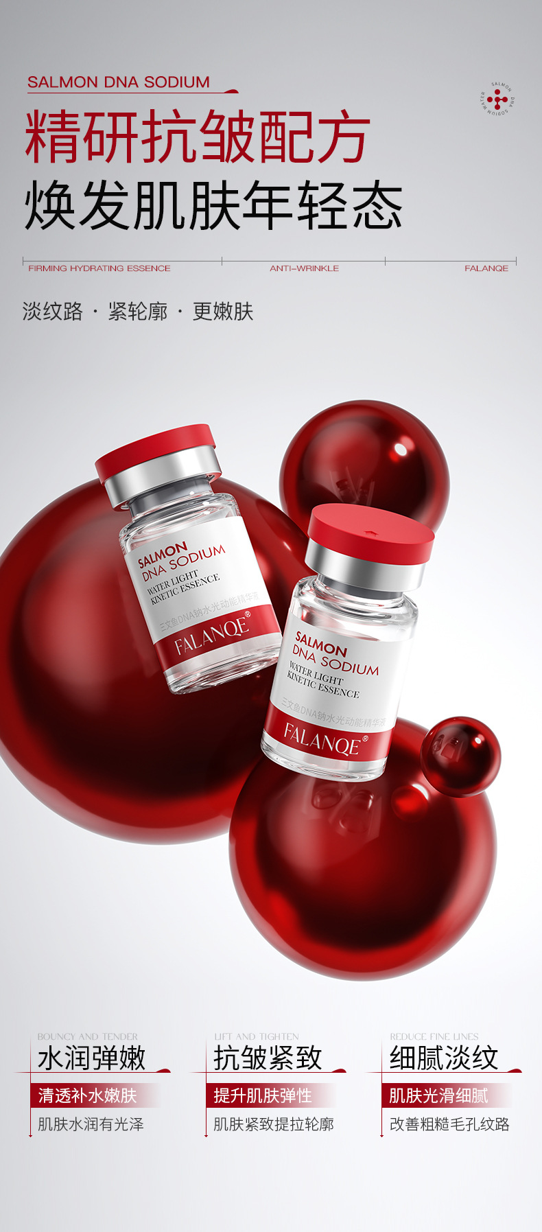 Fa Lanxi-Salmon DNA Sodium Water Light Kinetic Energy Essence Увлажняющая и увлажняющая ампула Second-Pulse Essence Оптовая продажа