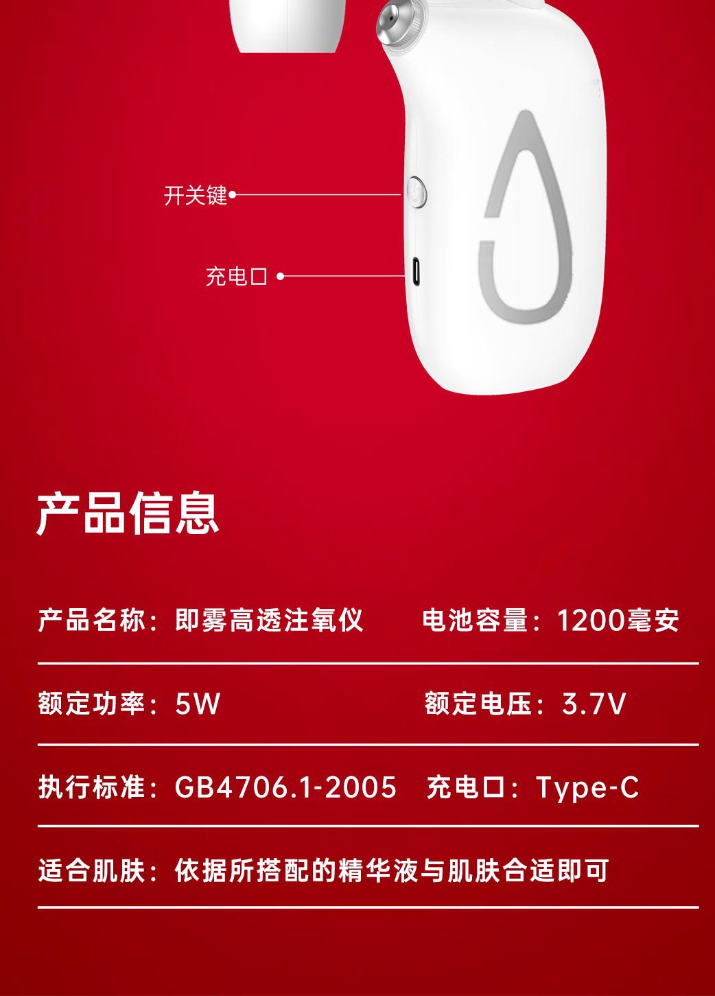 Измеритель впрыска кислорода, распылитель высокого давления, пистолет для впрыска кислорода, бытовой водяной светильник, введение эссенции, ручной распылитель, измеритель увлажнения лица