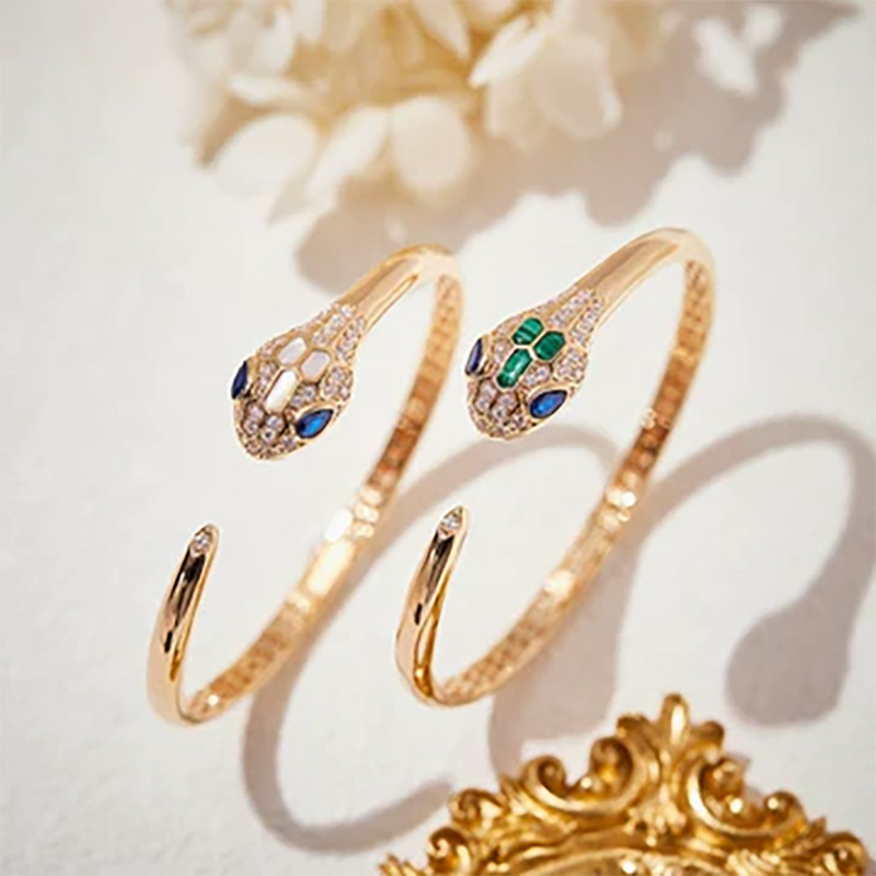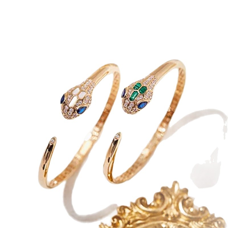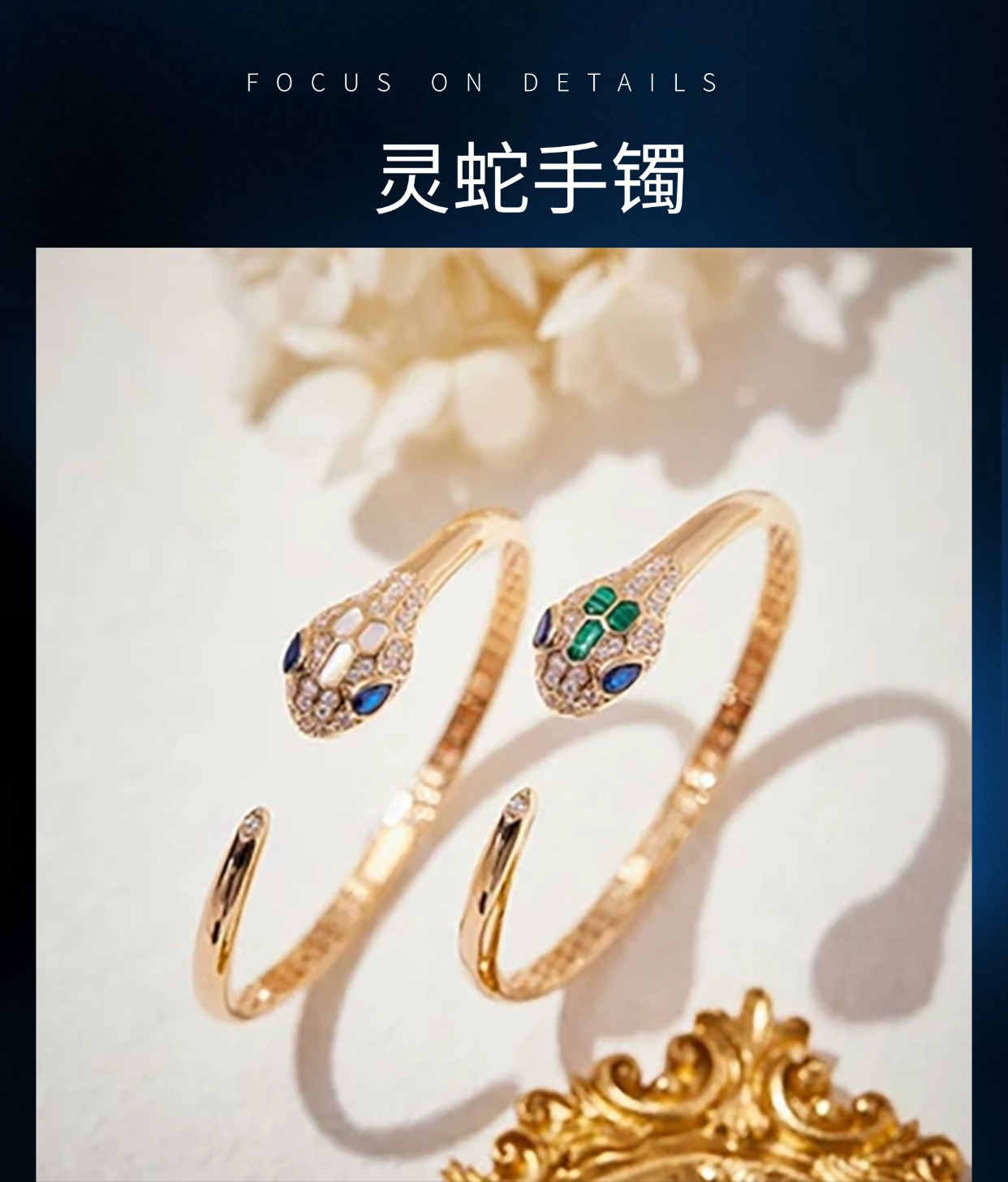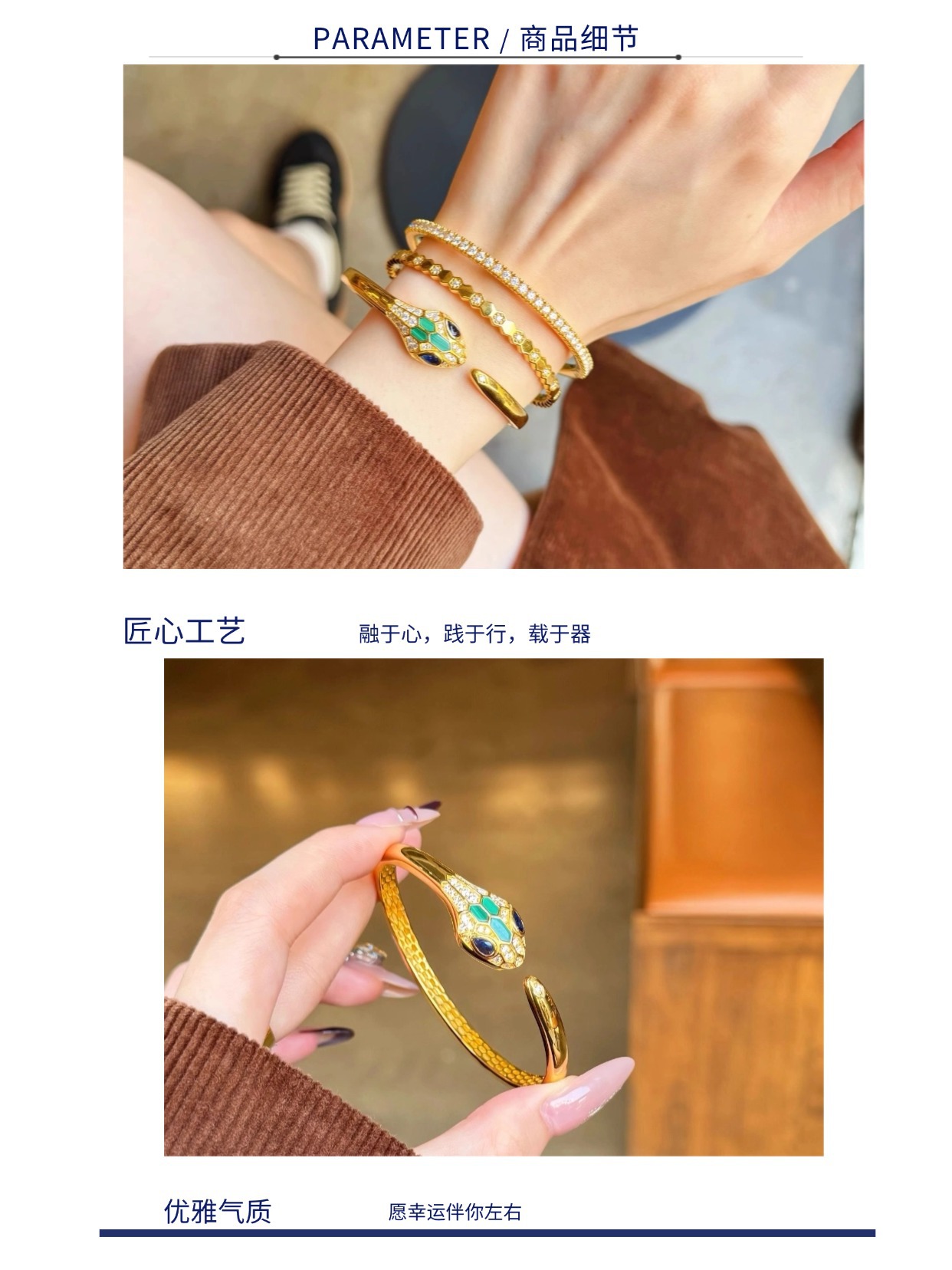 Zhou Bai Na Позолоченный серебряный браслет в виде змеи в подарок на год Змеи Модель Высокий двуглавый открытый браслет в виде змеи-XQSZ0015.