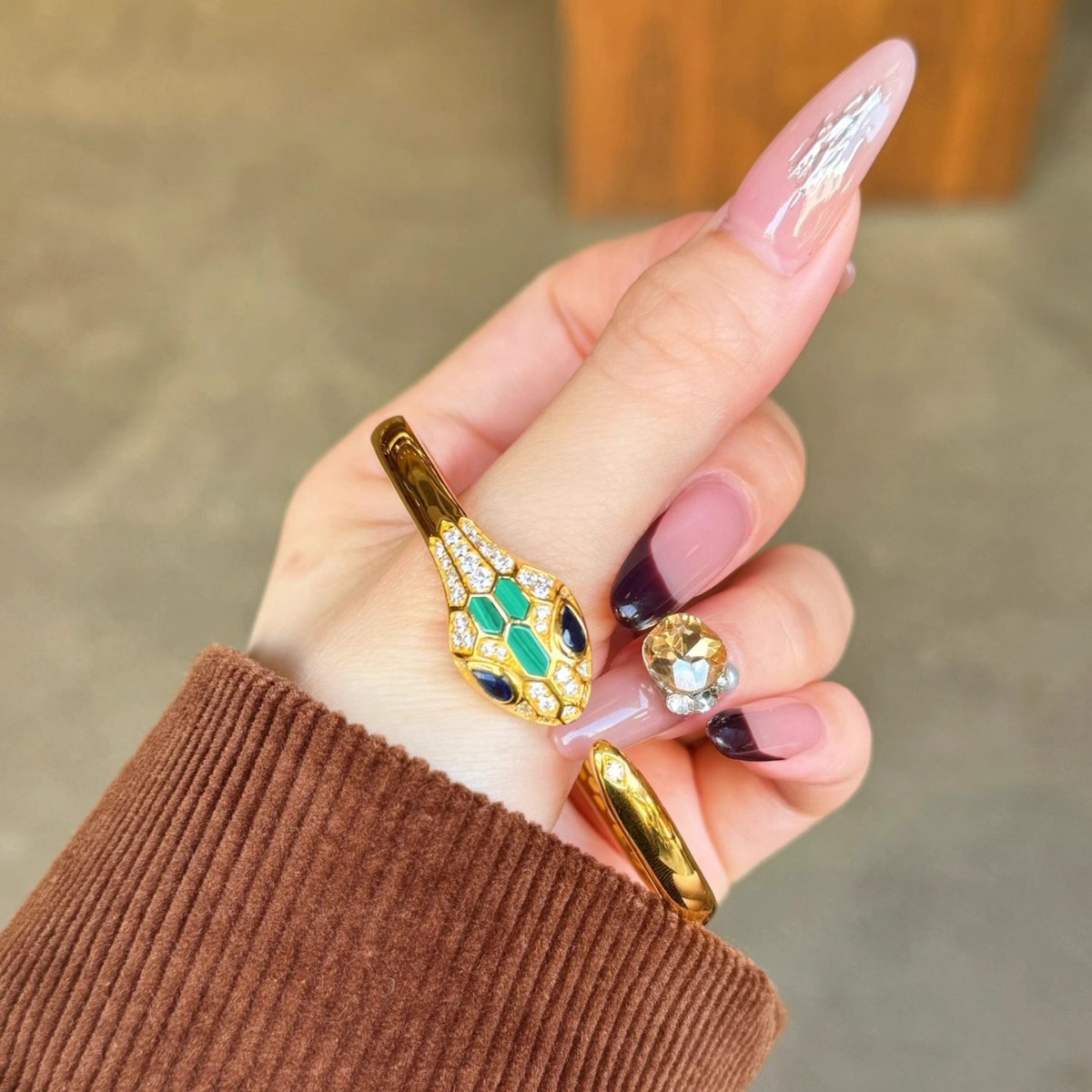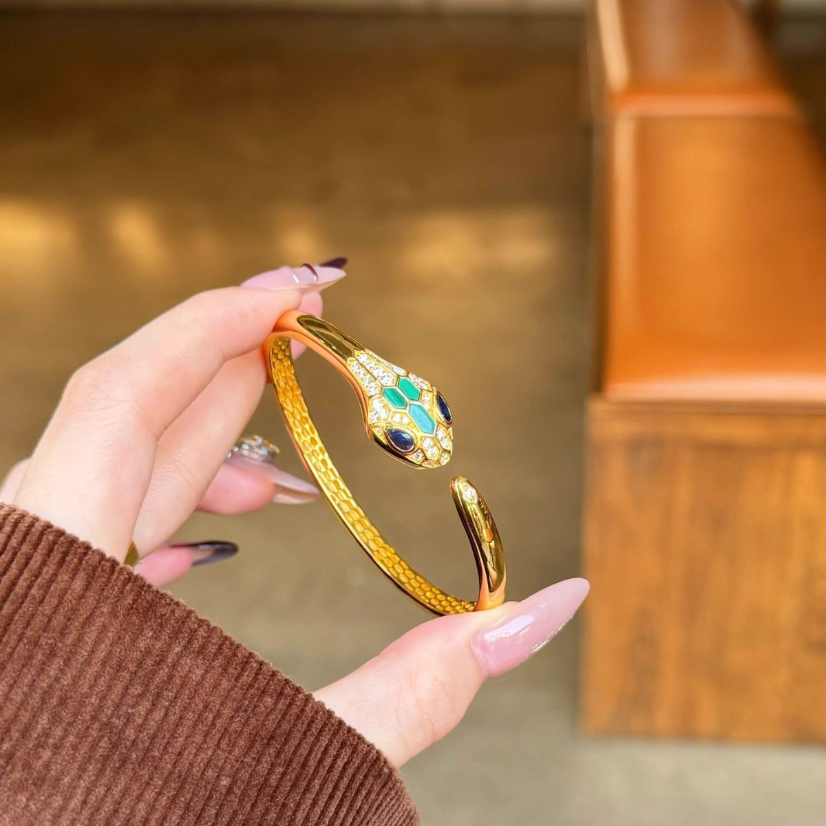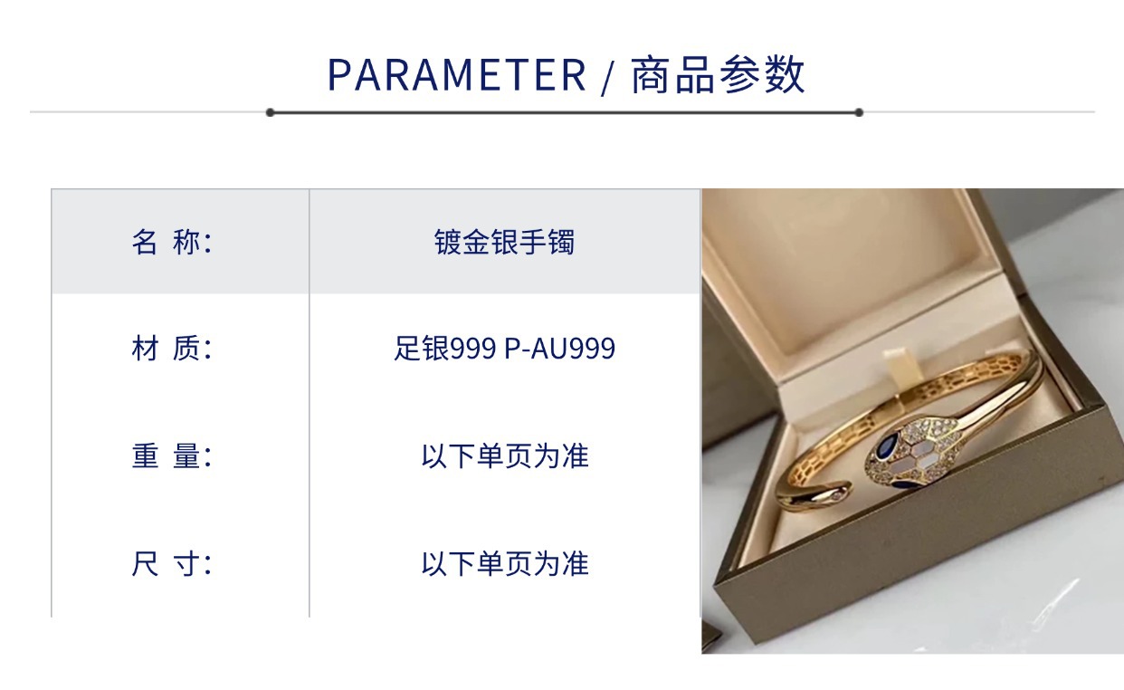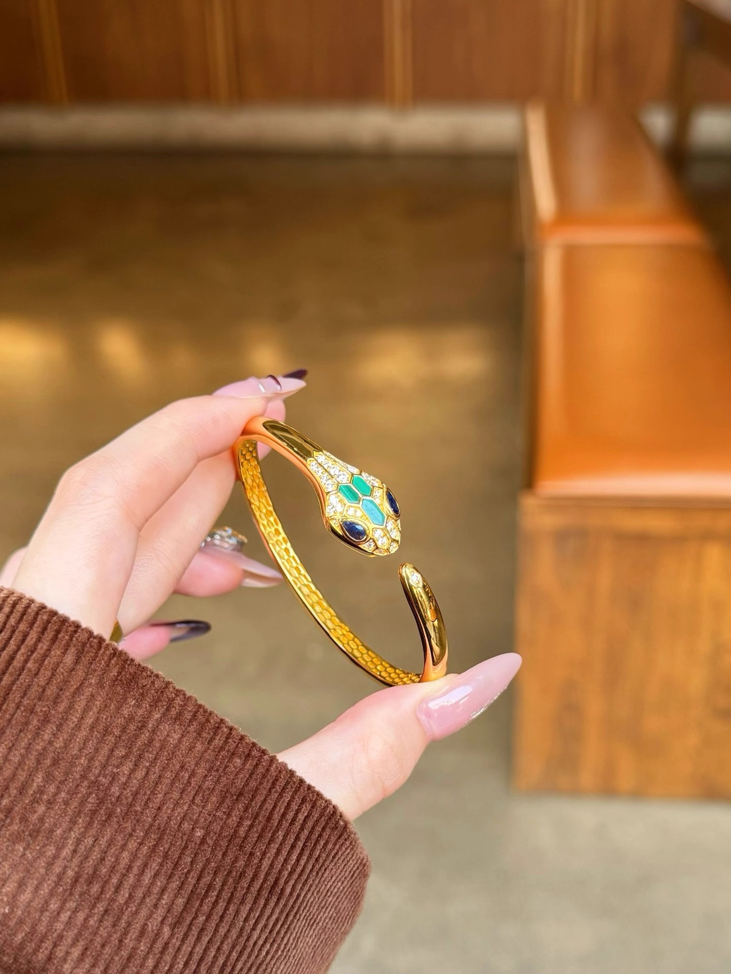Zhou Bai Na Позолоченный серебряный браслет в виде змеи в подарок на год Змеи Модель Высокий двуглавый открытый браслет в виде змеи-XQSZ0015.