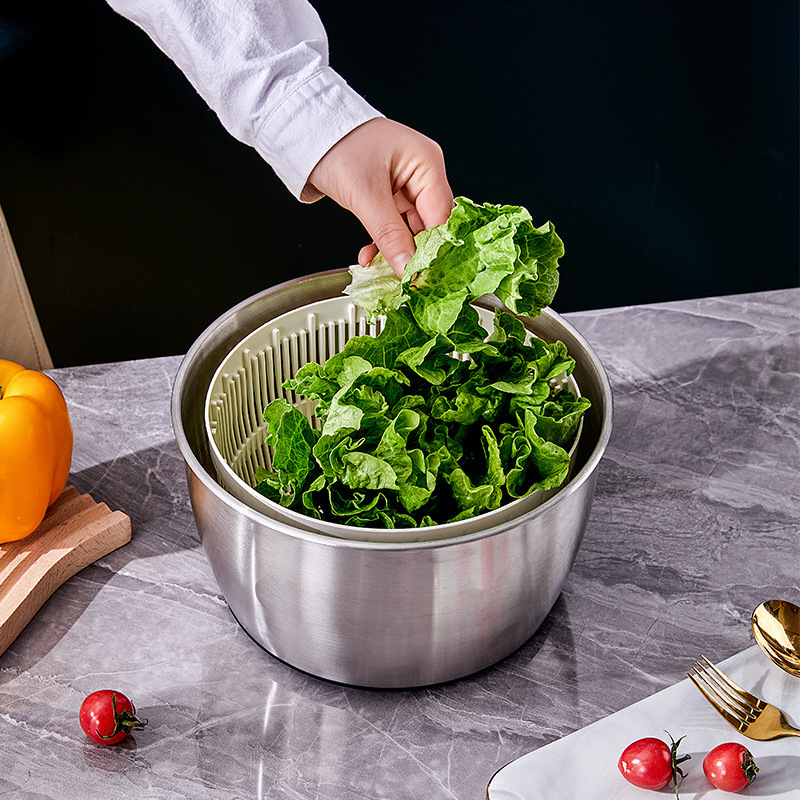 304 нержавеющая сталь, дегидратор для овощного салата, ручная вращающаяся сливная корзина, бытовая сушилка для фруктов и овощей для мытья овощей и обезвоживания