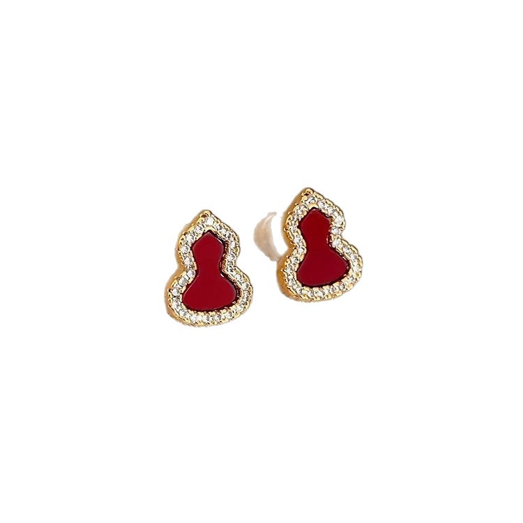 Серьги из позолоченного серебра с инкрустацией в виде тыквы, универсальные серьги в китайском стиле - XQES0006, золото
