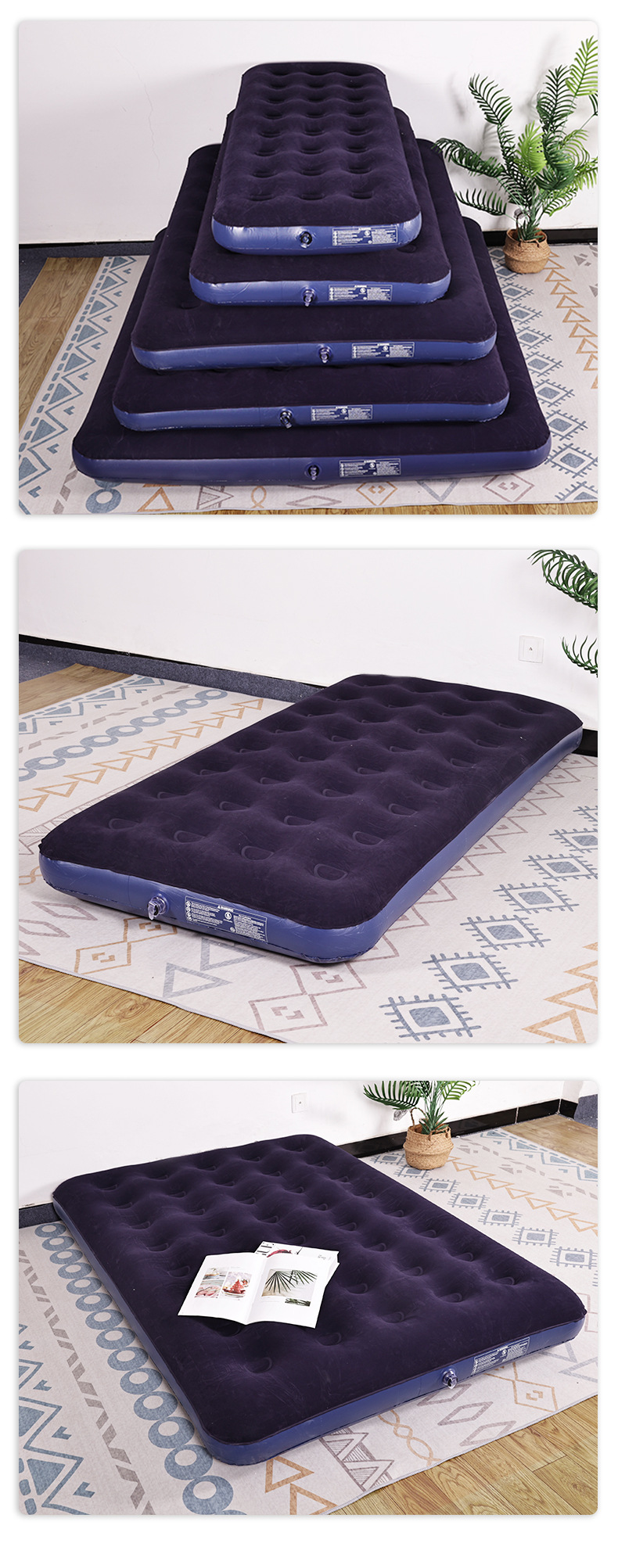 Надувной матрас из ПВХ с утолщенным флокированием, односпальный и двуспальный, для кемпинга на природе, портативный