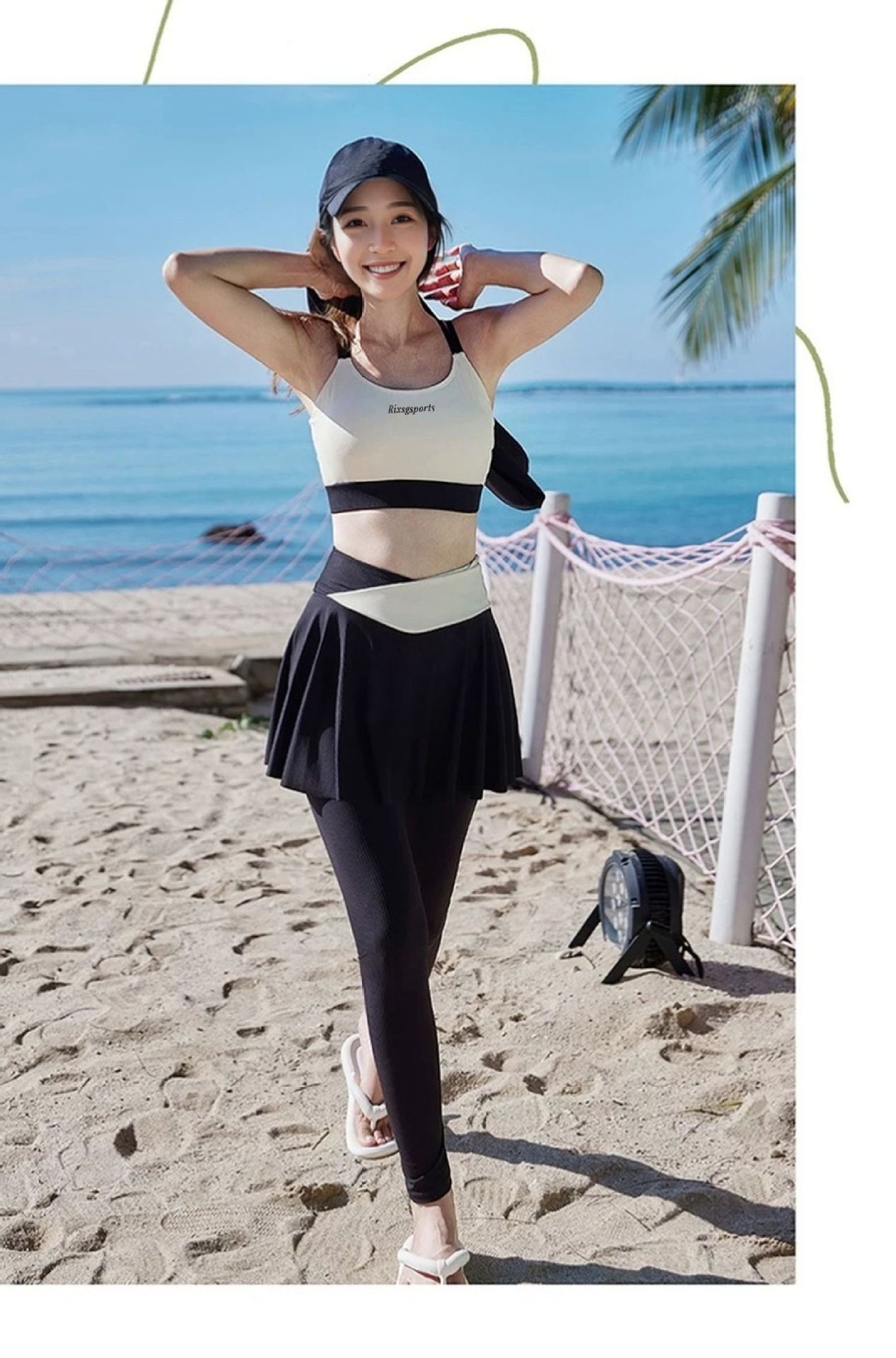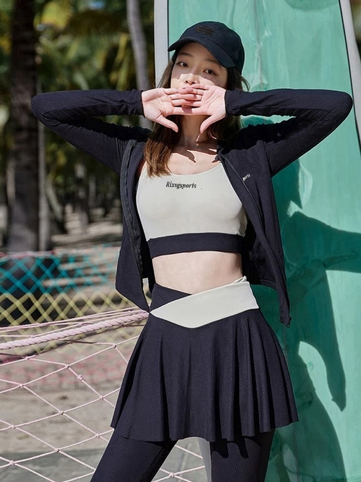 Новый женский купальник из четырех частей с длинными рукавами и длинными брюками, закрывающий живот и утягивающий спортивный стиль 2025, специальный для плавания, дайвинга и серфинга.