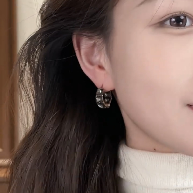 Квадратные серьги с черными бриллиантами для женщин, доступные роскошные нишевые серые бриллианты, элитные элегантные модные серьги, супер-вспышка, маленькие ароматные серьги