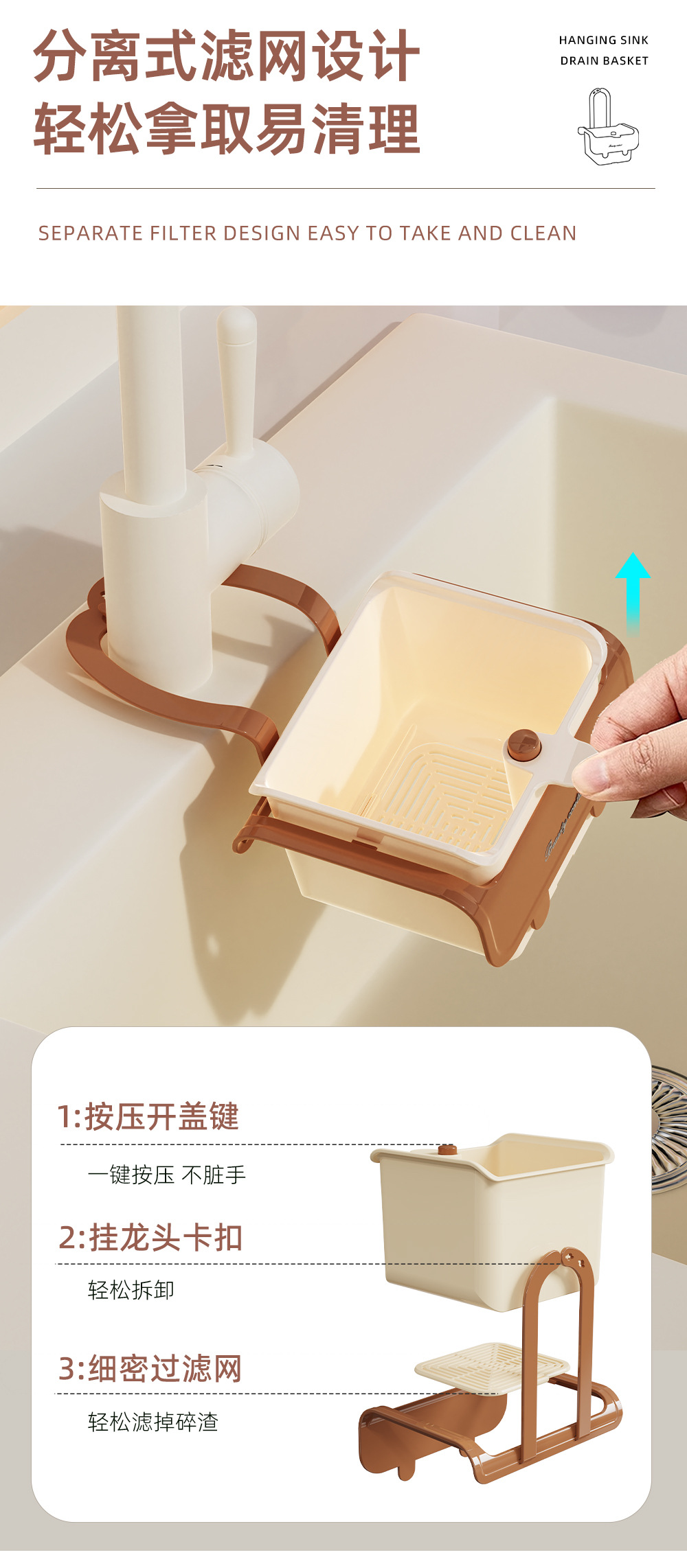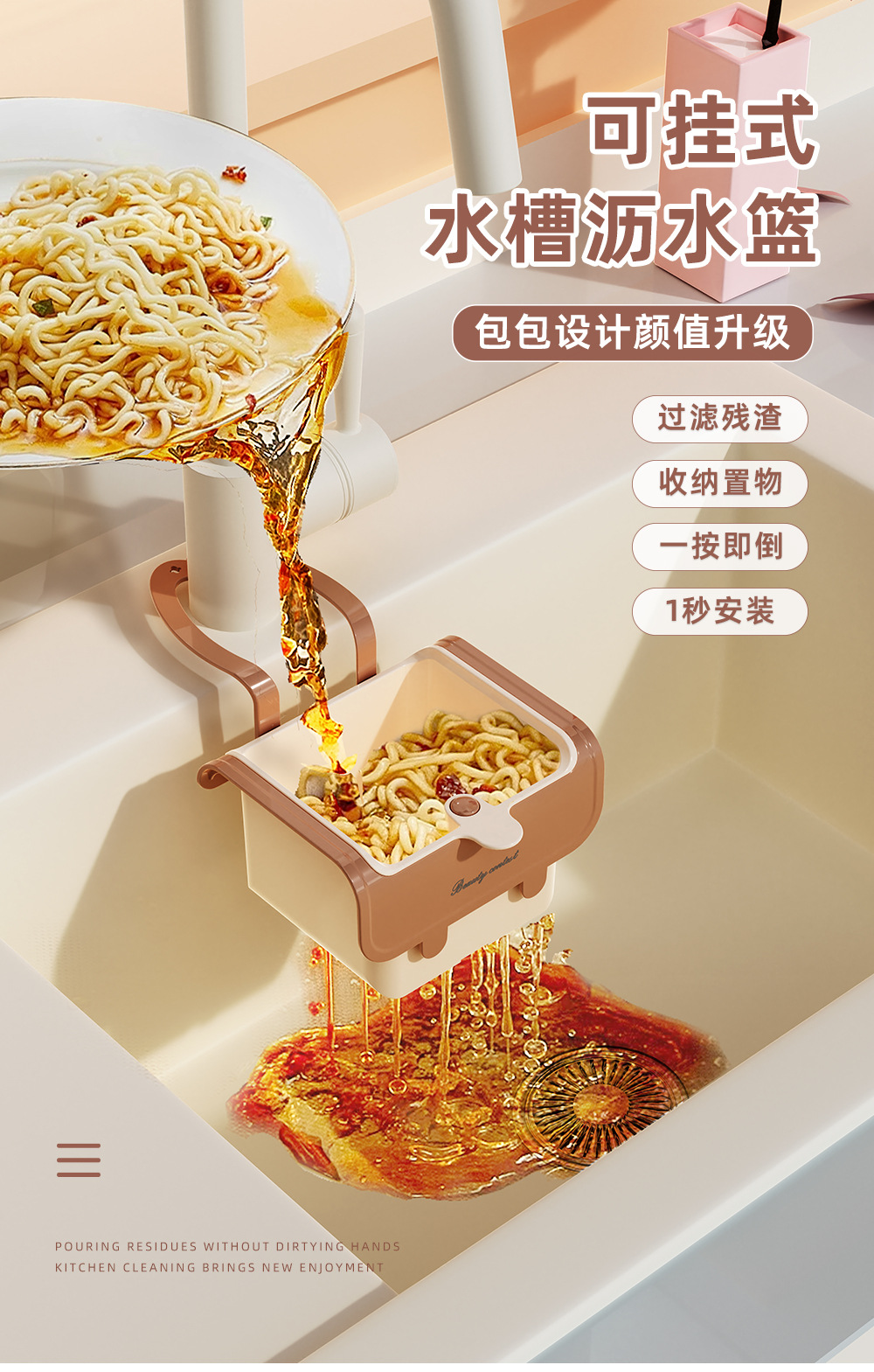 Подвесная корзина для слива раковины, фильтр для кухонной раковины, фильтр для отделения пищевых остатков, корзина для слива фруктов