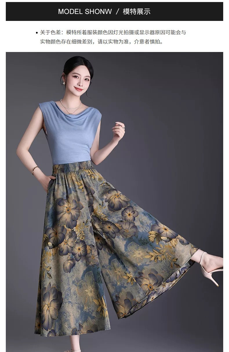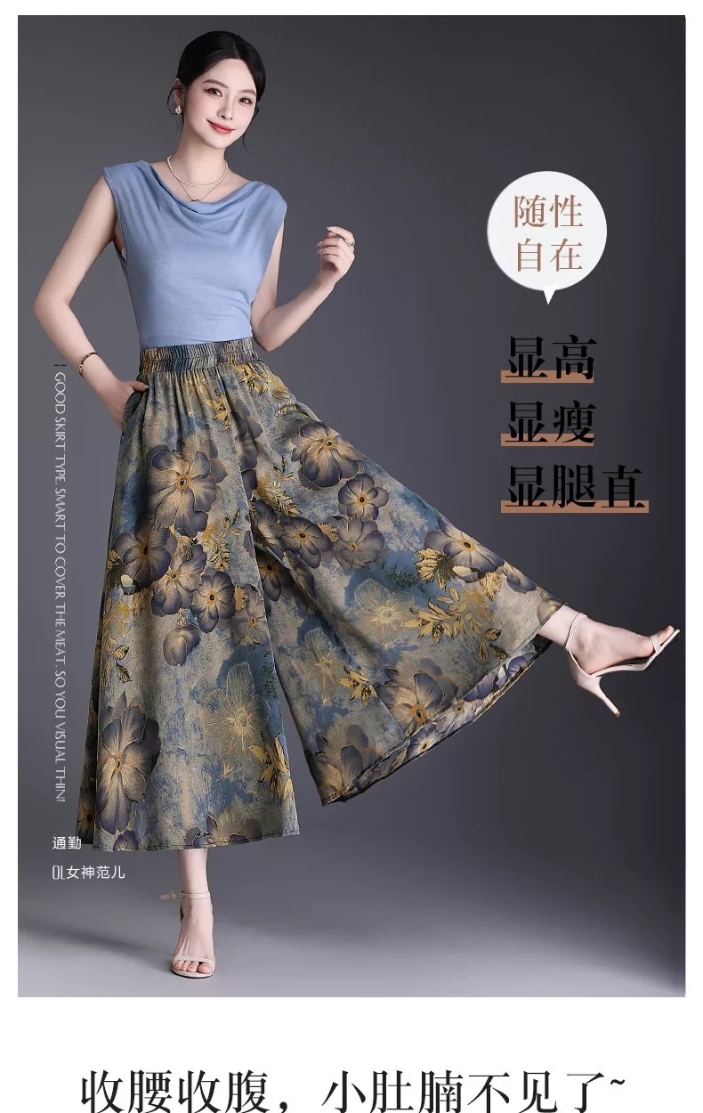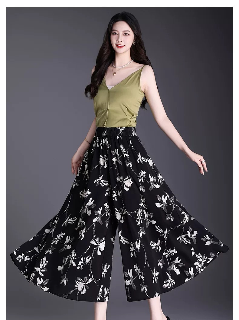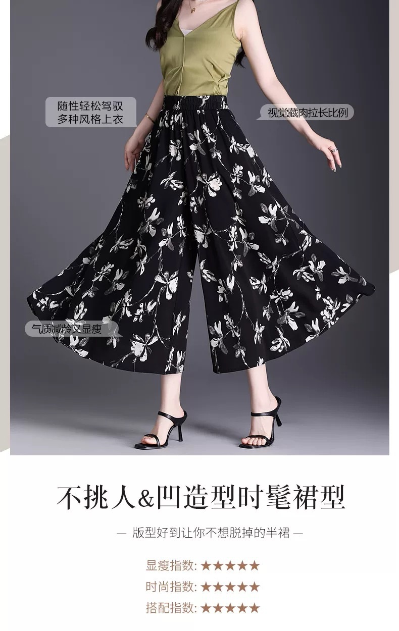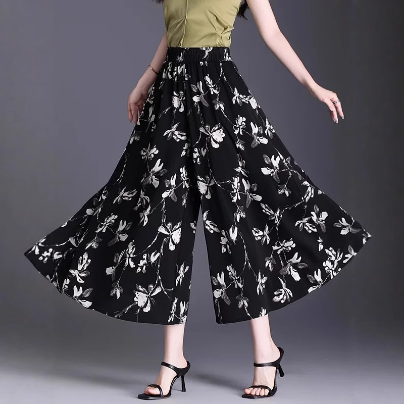 Утягивающие летние модные универсальные повседневные брюки-кюлоты большого размера с высокой талией и цветочным принтом, с девятиточечным подолом.