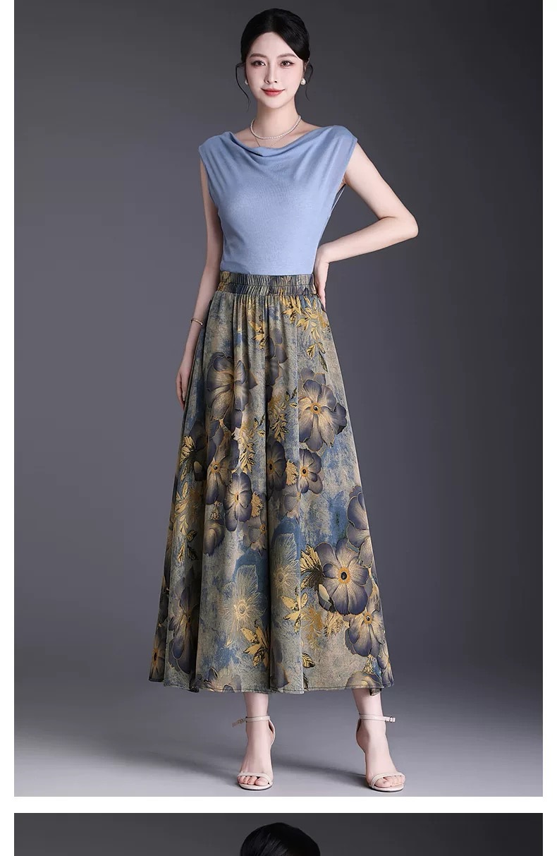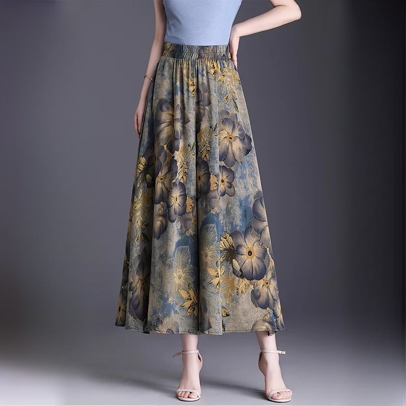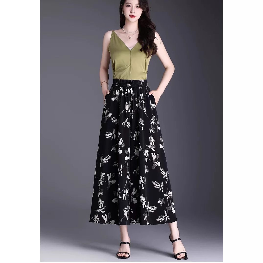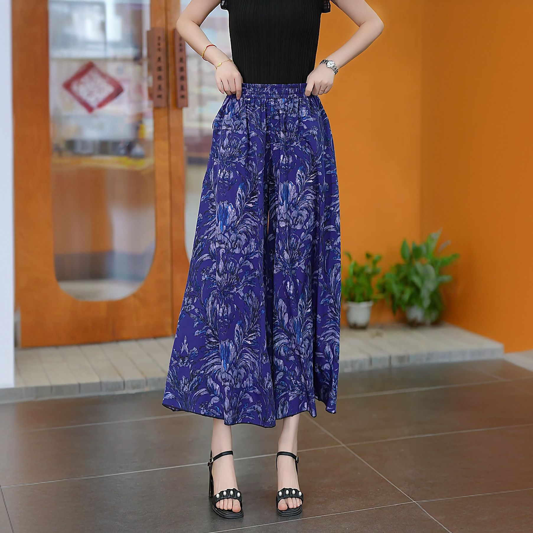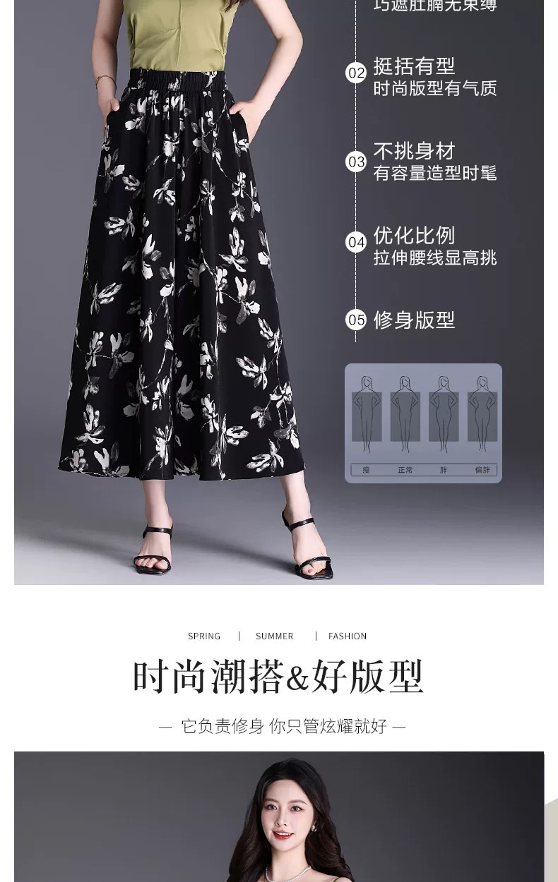 Утягивающие летние модные универсальные повседневные брюки-кюлоты большого размера с высокой талией и цветочным принтом, с девятиточечным подолом.