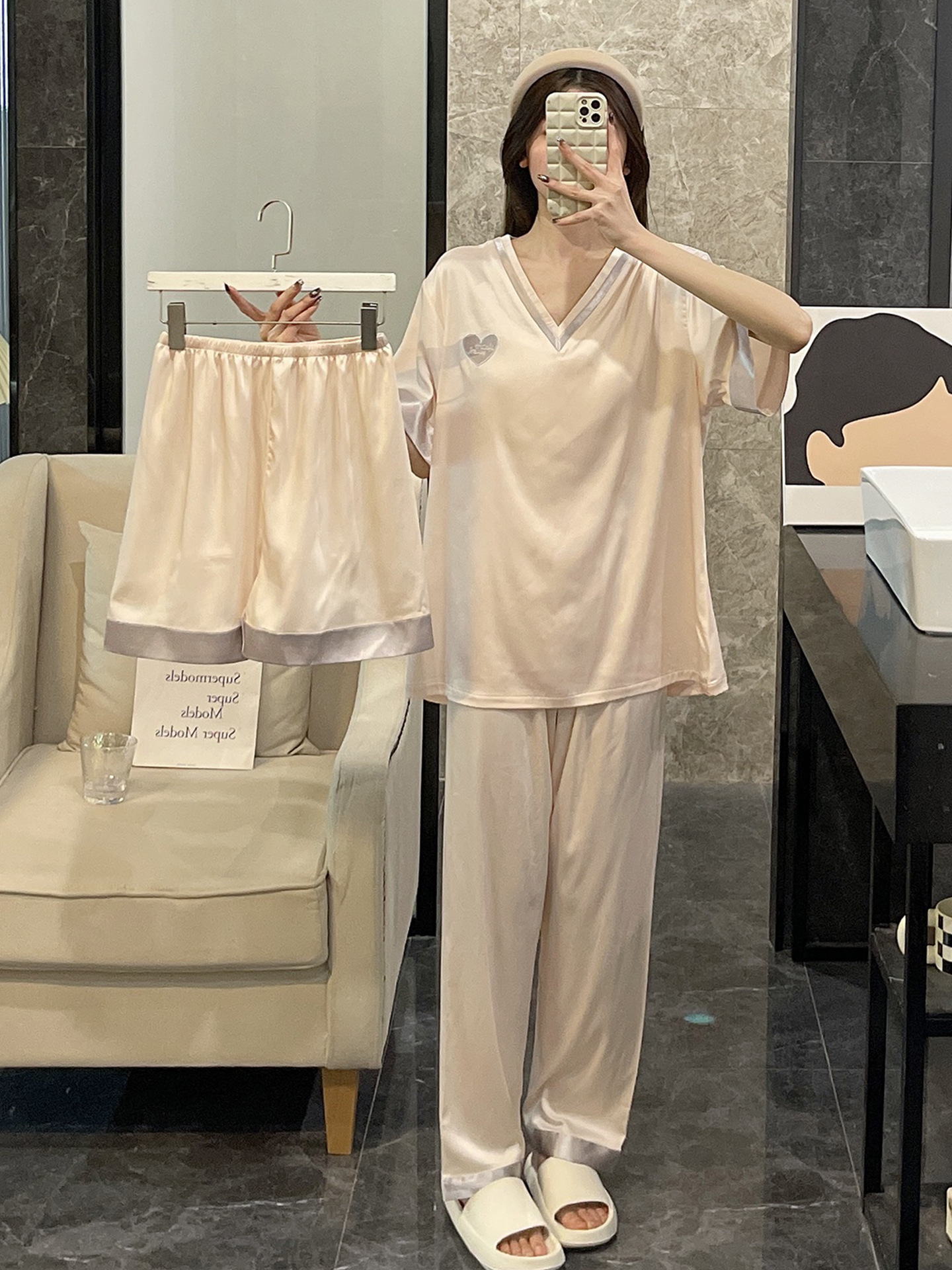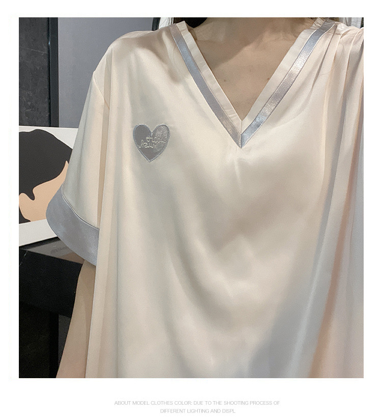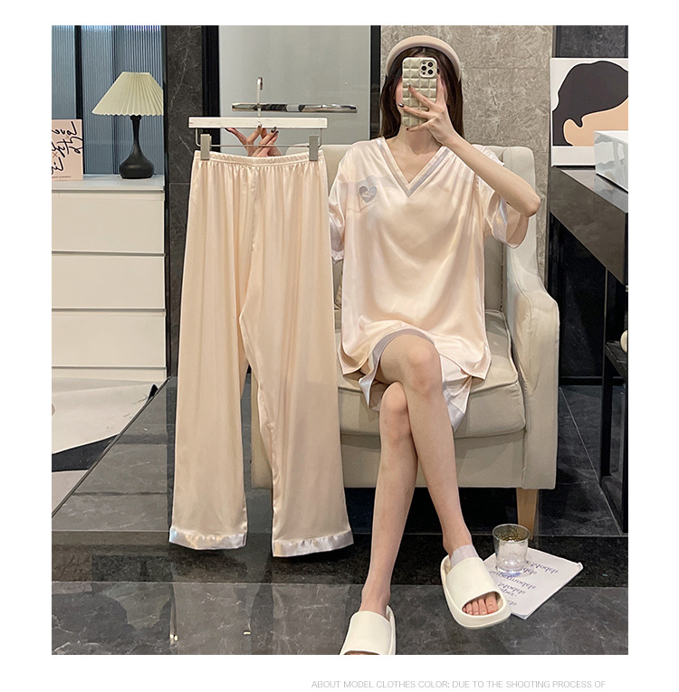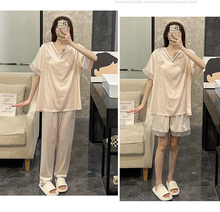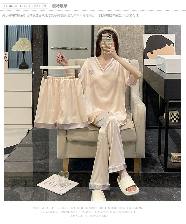 Летний шелковый тонкий костюм-тройка с короткими рукавами, пижамы из ледяного шелка для женщин, которые можно носить на улице, крутая весенне-осенняя домашняя одежда большого размера