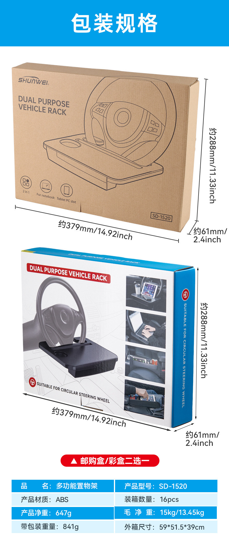 Автомобильный руль Shunwei, небольшой стол, коробка для хранения, подставка для ноутбука «два в одном», автомобильный обеденный стол