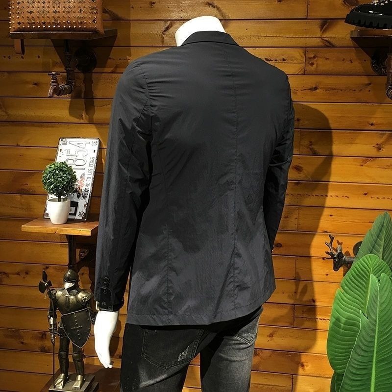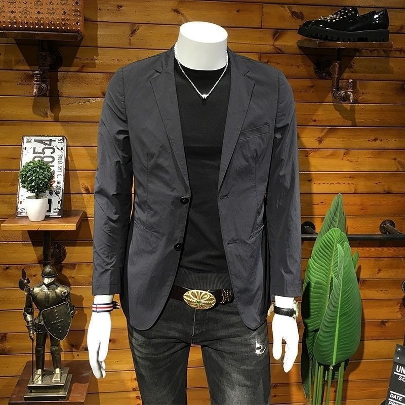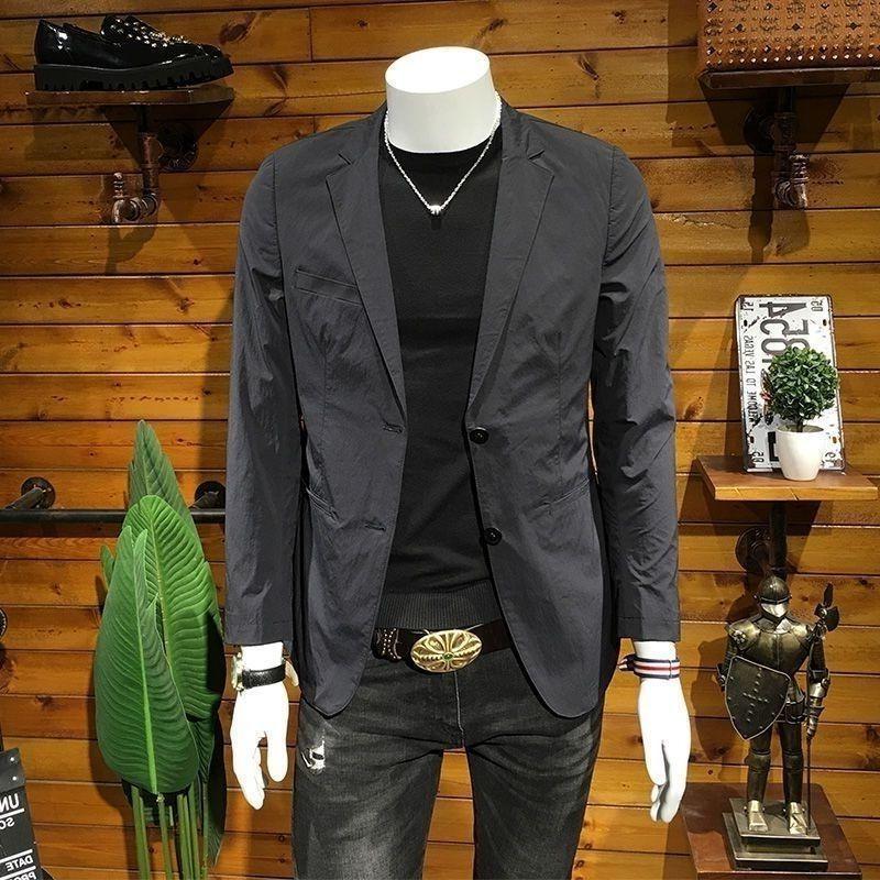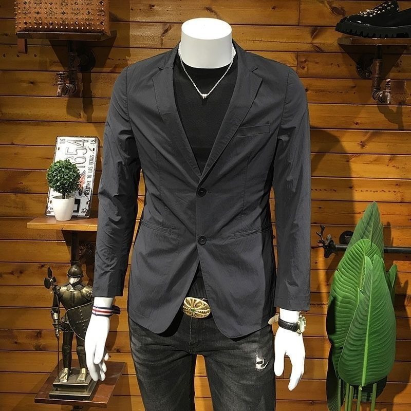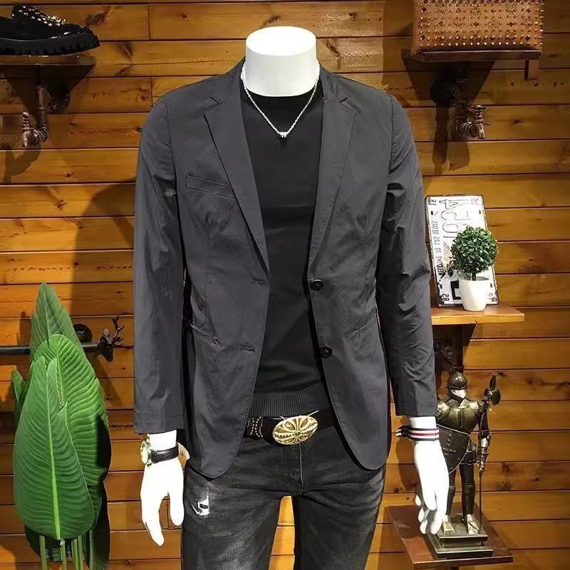 Мужской костюм в европейском стиле, весна-осень, лёгкая роскошь, повседневный, модный, приталенный, корейский стиль, чёрный пиджак