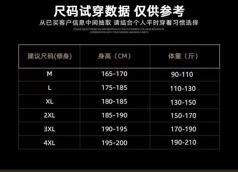 Рекомендация М 45-55kg; L Рекомендация 55-65kg; Рекомендации XL 65-75kg; 2XL рекомендуется 75-85kg; 3XL рекомендуется 85-95kg; 4XL рекомендуется 95-105kg