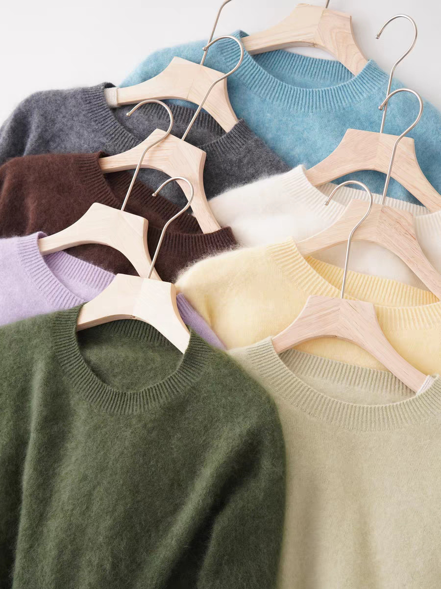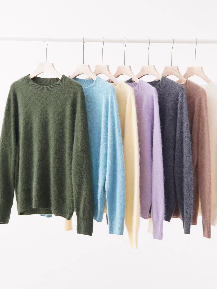 Женский свитер из начёсанной пряжи Little Fur Island: бесшовный, с круглым или V-образным вырезом, в стиле «ленивый шик»