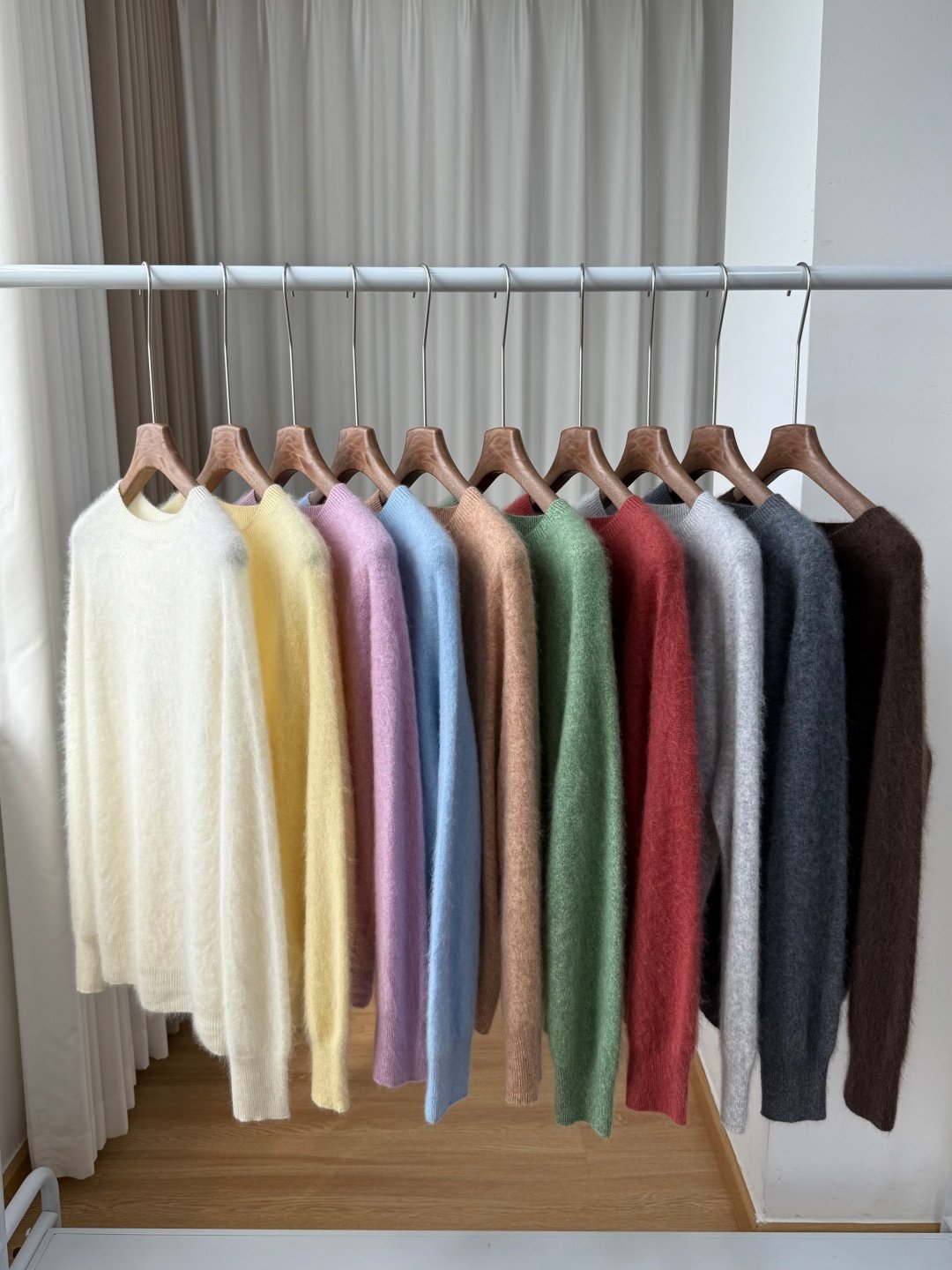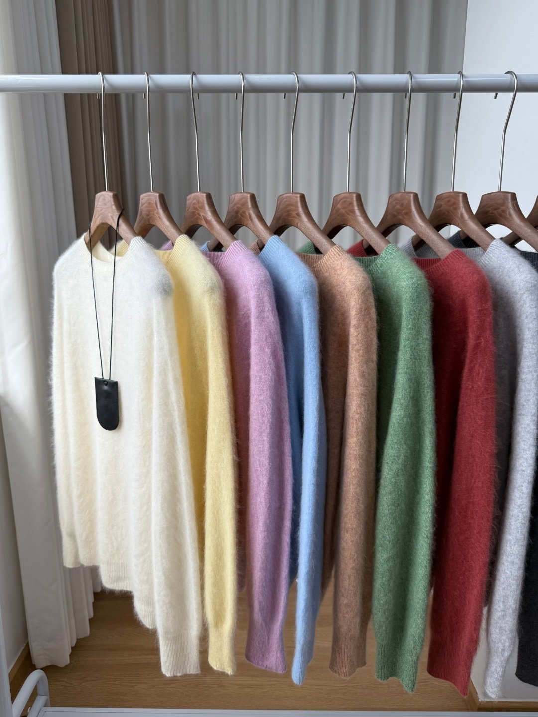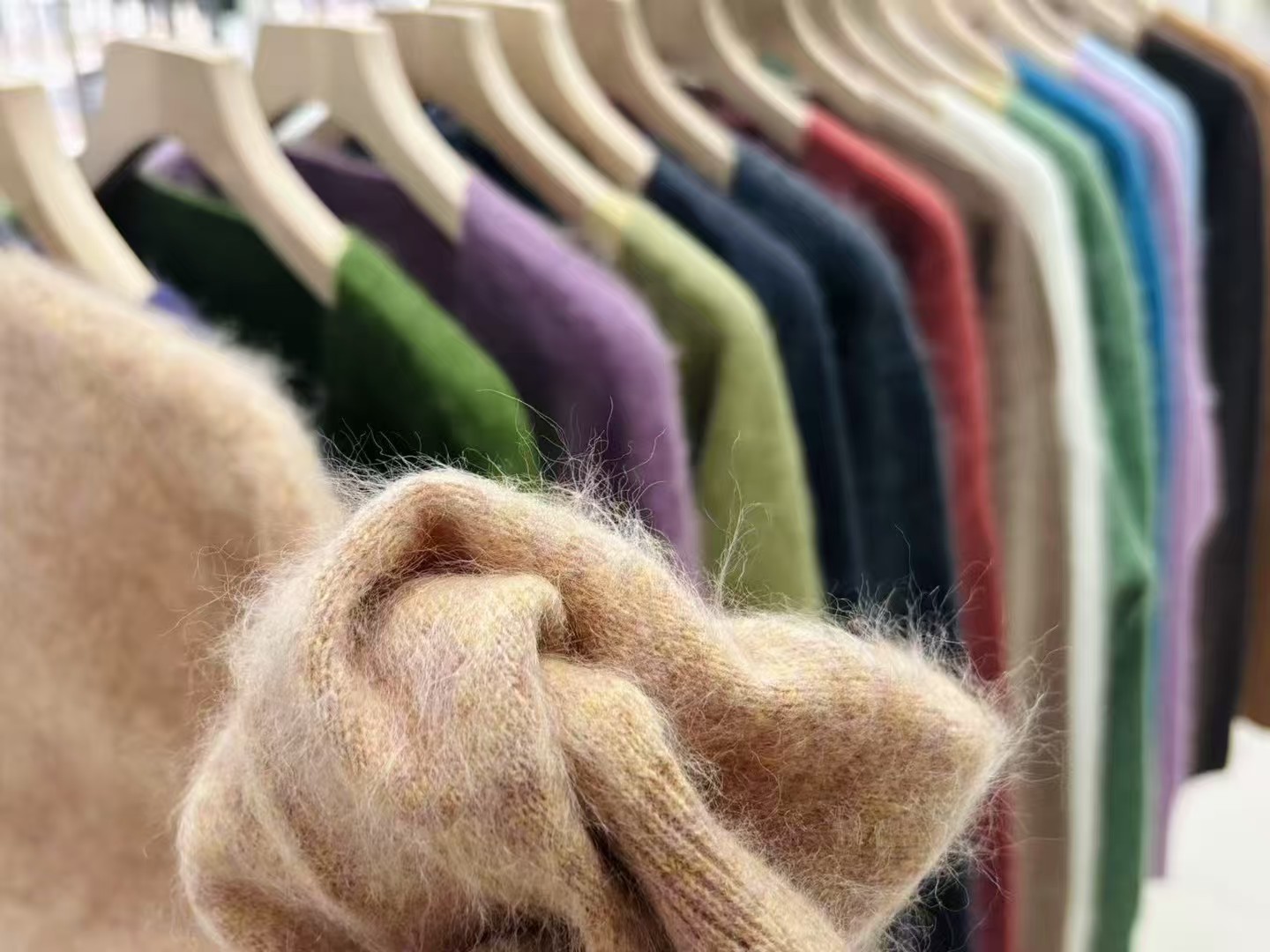 收到衣服以后呢,可以用挂烫机吹一下,就是用那个蒸汽把那个毛吹一下,它那个毛啊它才会舒展开来,然后那个绒的感觉才会出来,质感会更好哦。