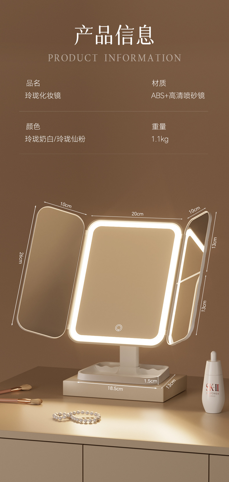 Светодиодное настольное зеркало с подсветкой, складное зеркало для макияжа, увеличительное зеркало для макияжа для дома, студенческого общежития