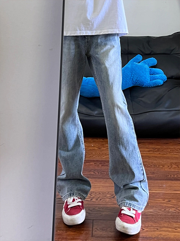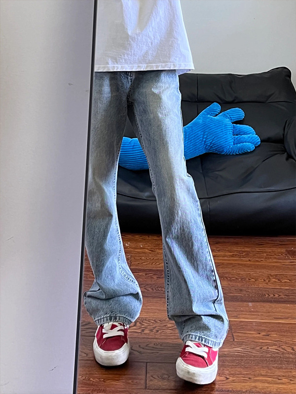 Светло-голубые джинсы-сабо, мужские летние узкие брюки в американском стиле, красивые утягивающие прямые брюки для похудения