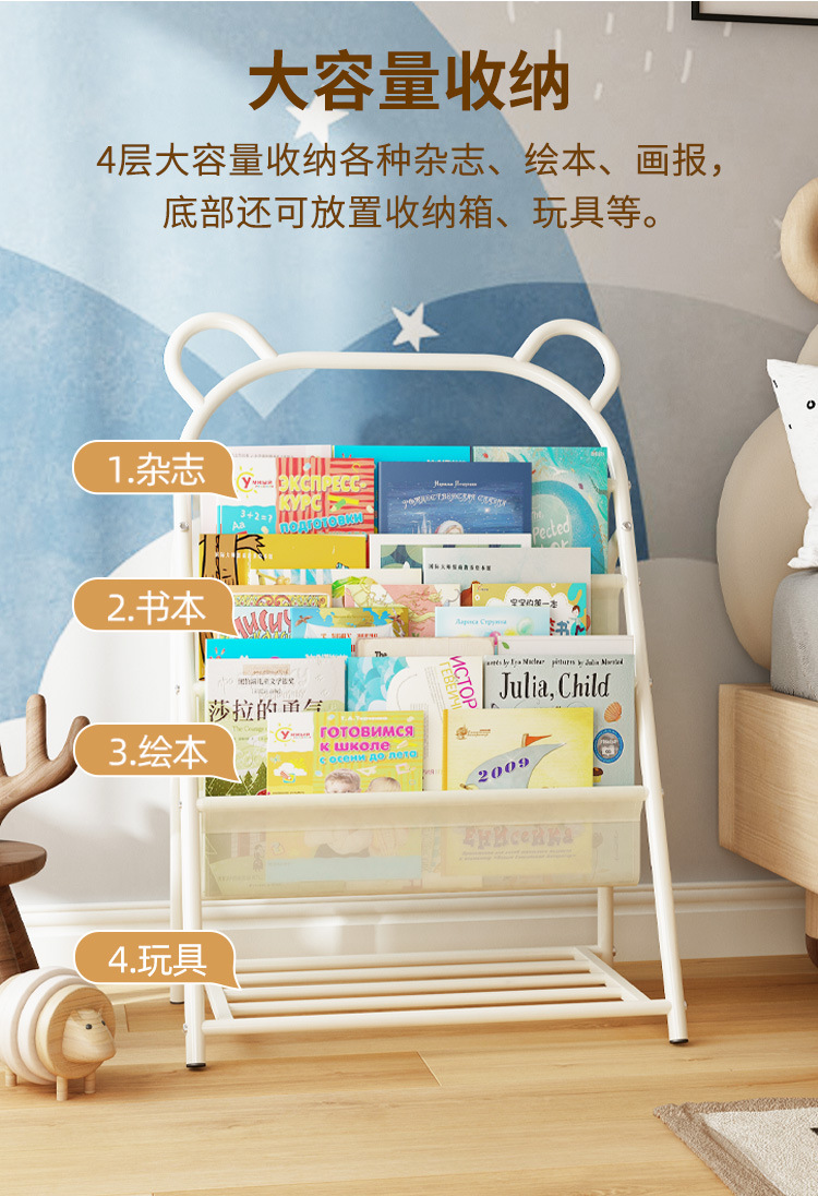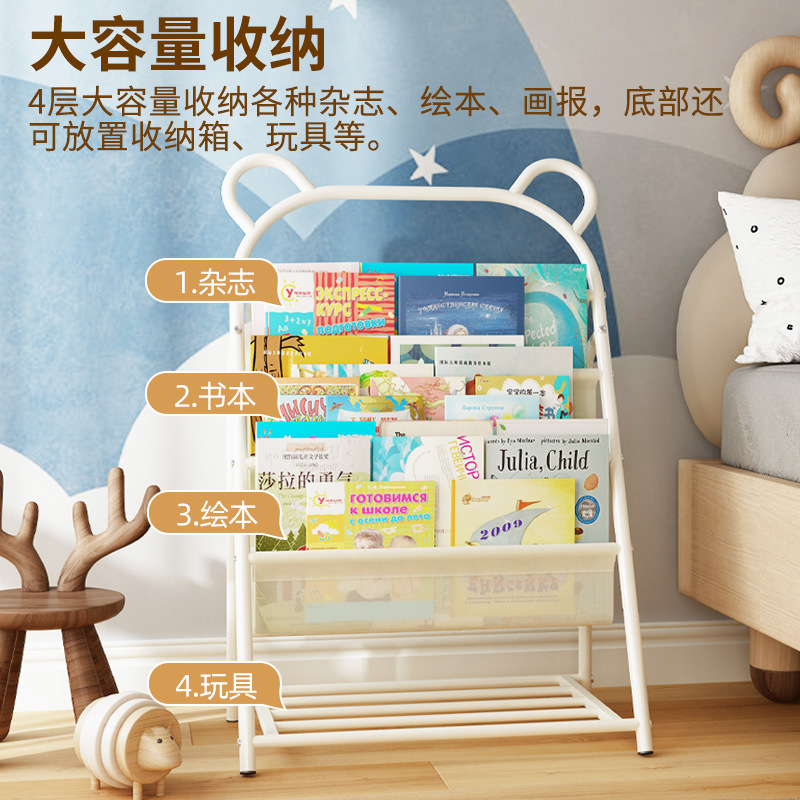 Детская книжная полка для дома, полка для книг с картинками, зона для чтения, мобильная полка для хранения игрушек, простой детский книжный шкаф, напольная полка для хранения